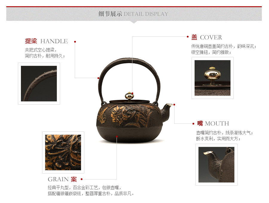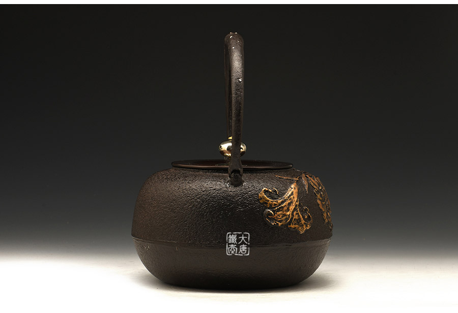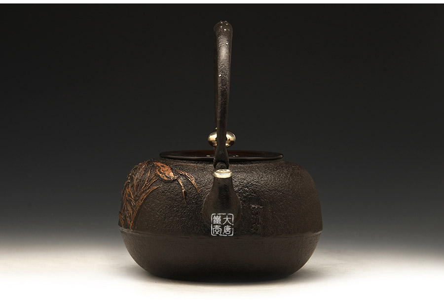 日本山形鑄物名堂荒井工房匠心之作,一模一具,純手工蠟鑄成型。經(jīng)典平丸型,百合金彩工藝,包銀壺嘴,搭配鑲銀鑲嵌袋鉉,整器厚重古樸,品質(zhì)非凡。