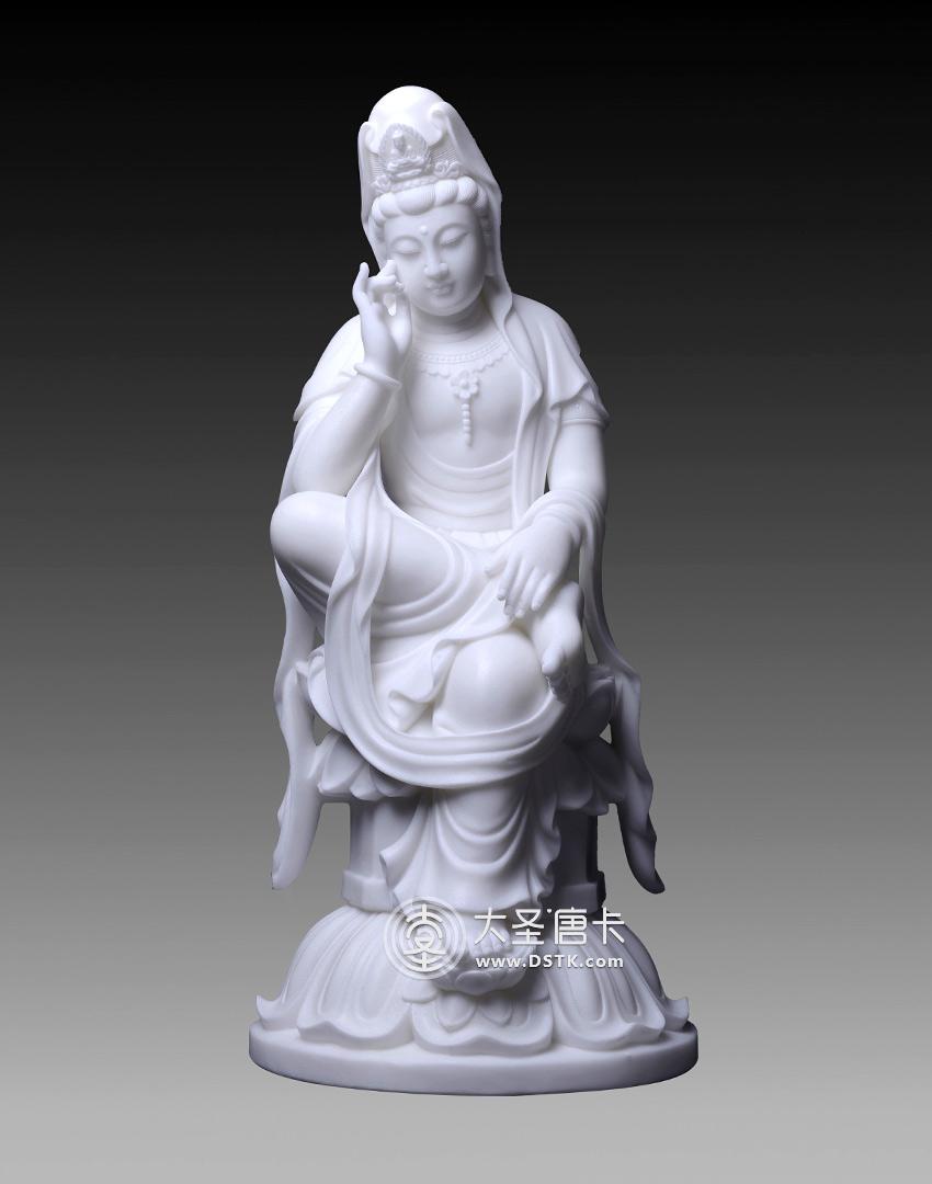 思維觀音漢白玉68cm [ 編號:66252 ]
