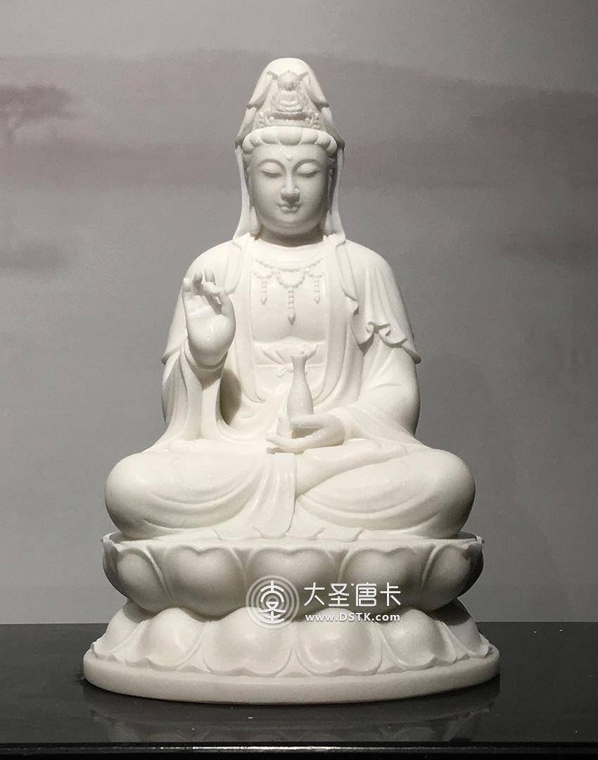 坐蓮觀音漢白玉48cm [ 編號:66259 ]