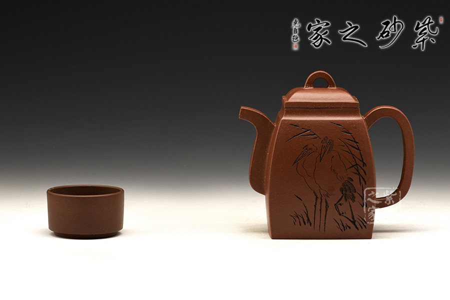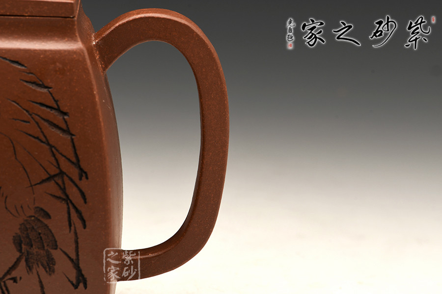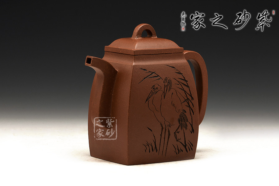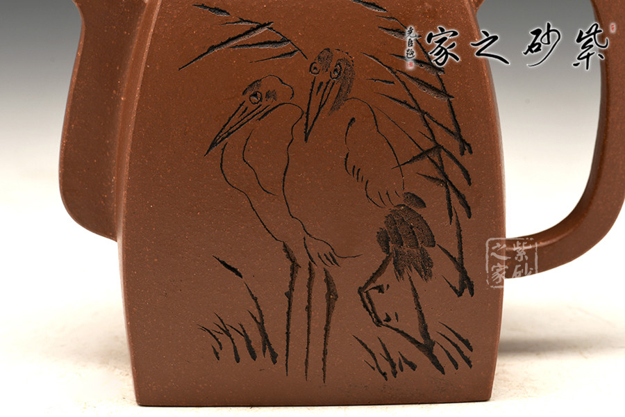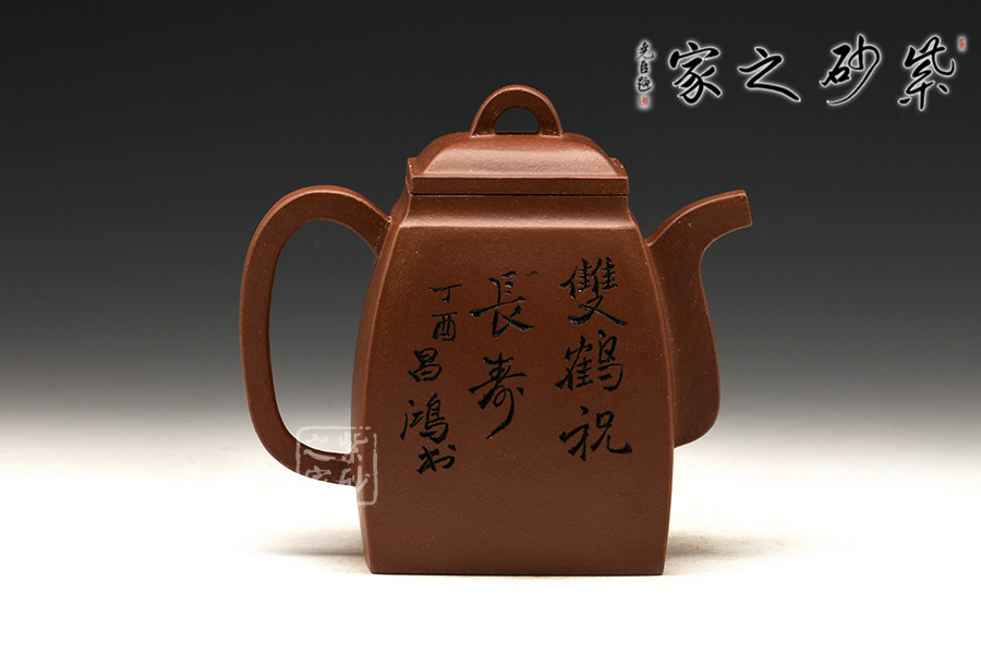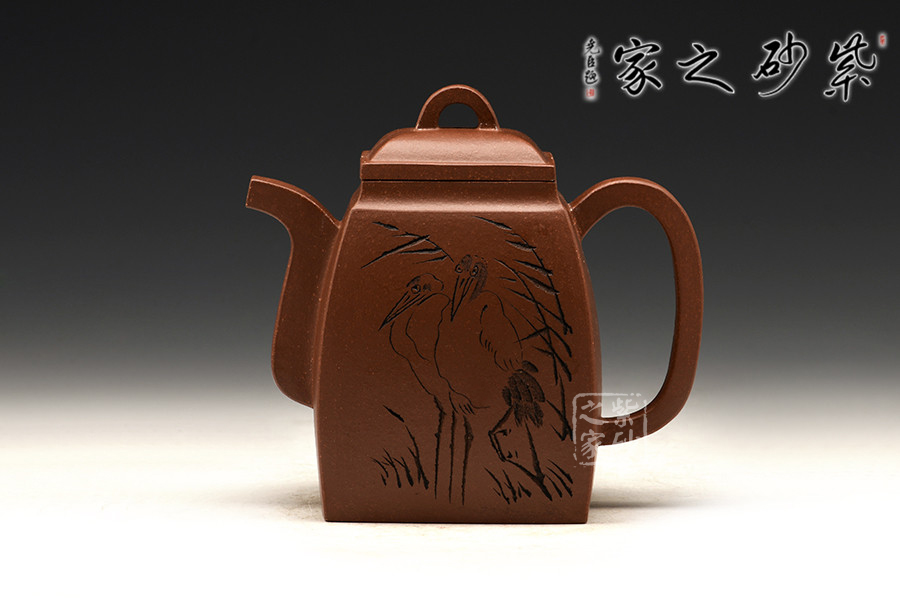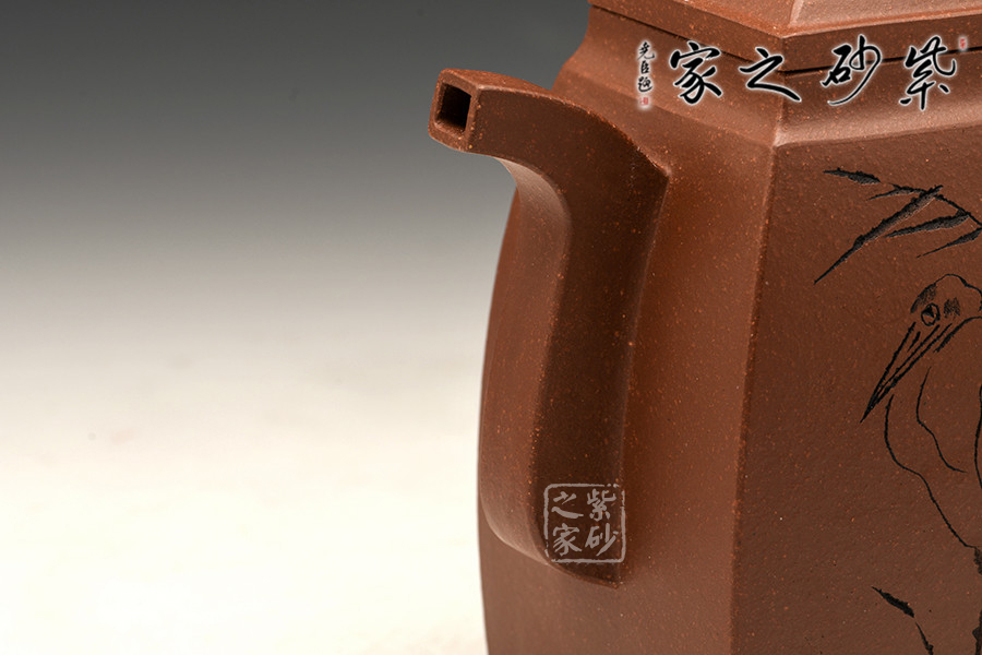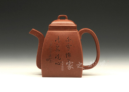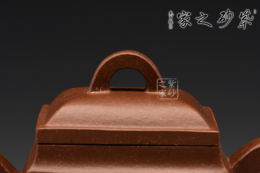 此壺工藝精湛、造型質(zhì)古,精雅而不失古樸韻味。以細(xì)膩原礦清水泥制作,壺身為高四方,四棱作圓化處理,“方中寓圓”成方器。斂口,短頸;四注式壓蓋,弧形橋式鈕;扁環(huán)狀把,管狀流,流體四分之三平貼壺身。