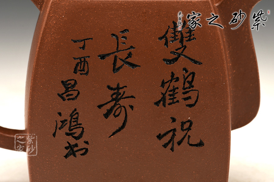B面: 裝飾: 祝福句刻 裝飾者:李昌鴻 裝飾內(nèi)容: 雙鶴祝長壽