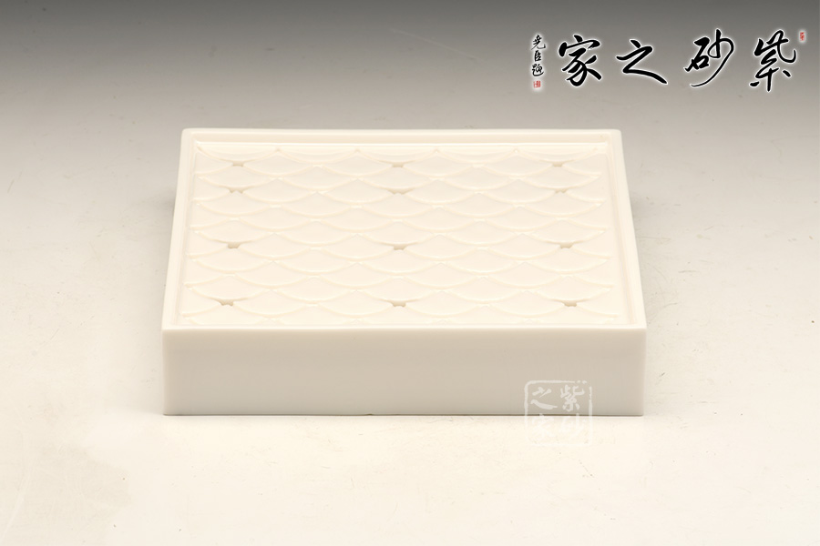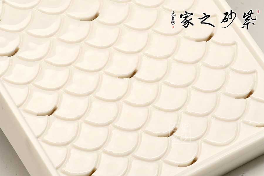 此款泡臺,取白瓷為材,細(xì)膩優(yōu)雅,置于茶室,與杯皿交錯間,超凡脫俗,出淤泥不染,似美人出浴嬌美溫柔。臺面均勻雕刻魚鱗狀花紋,層層簇簇繁而不俗。