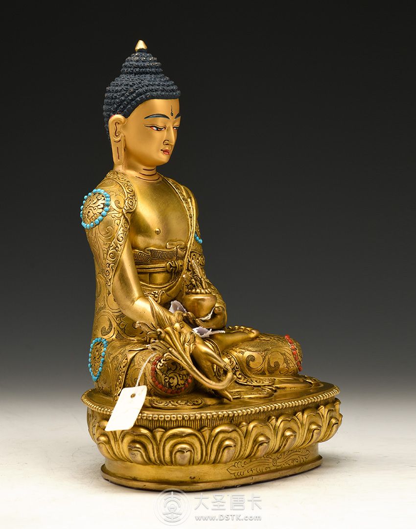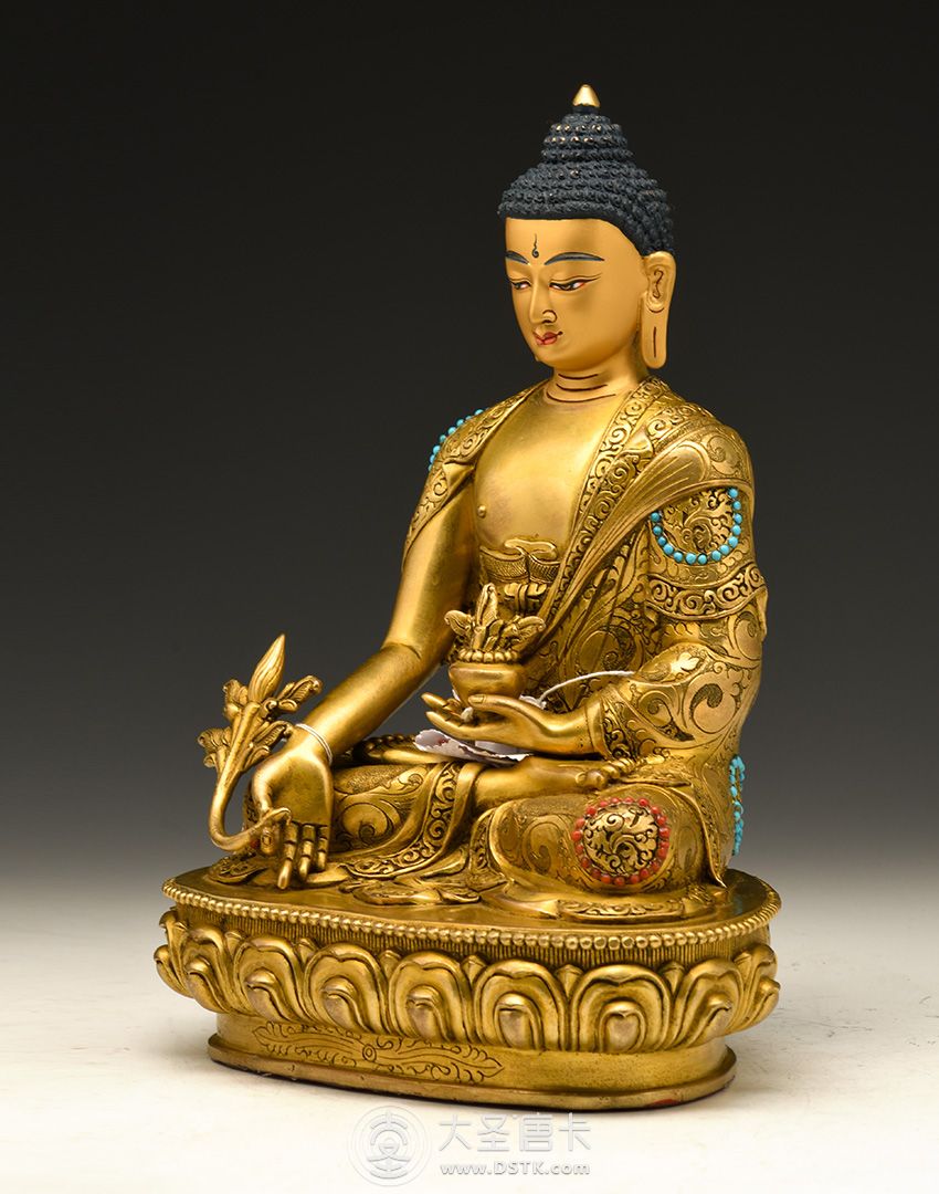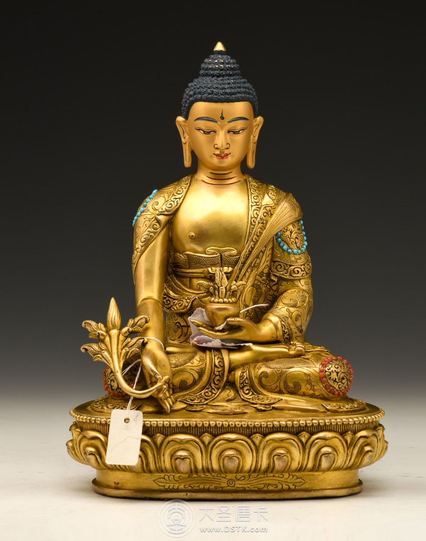 產地:尼泊爾佛像 工藝:鎏金 創作年份:2017 題材:藥師佛 繪制時間:2月 尺寸:21*12*15cm 重量:0 g 材質:紫銅 使用場地: