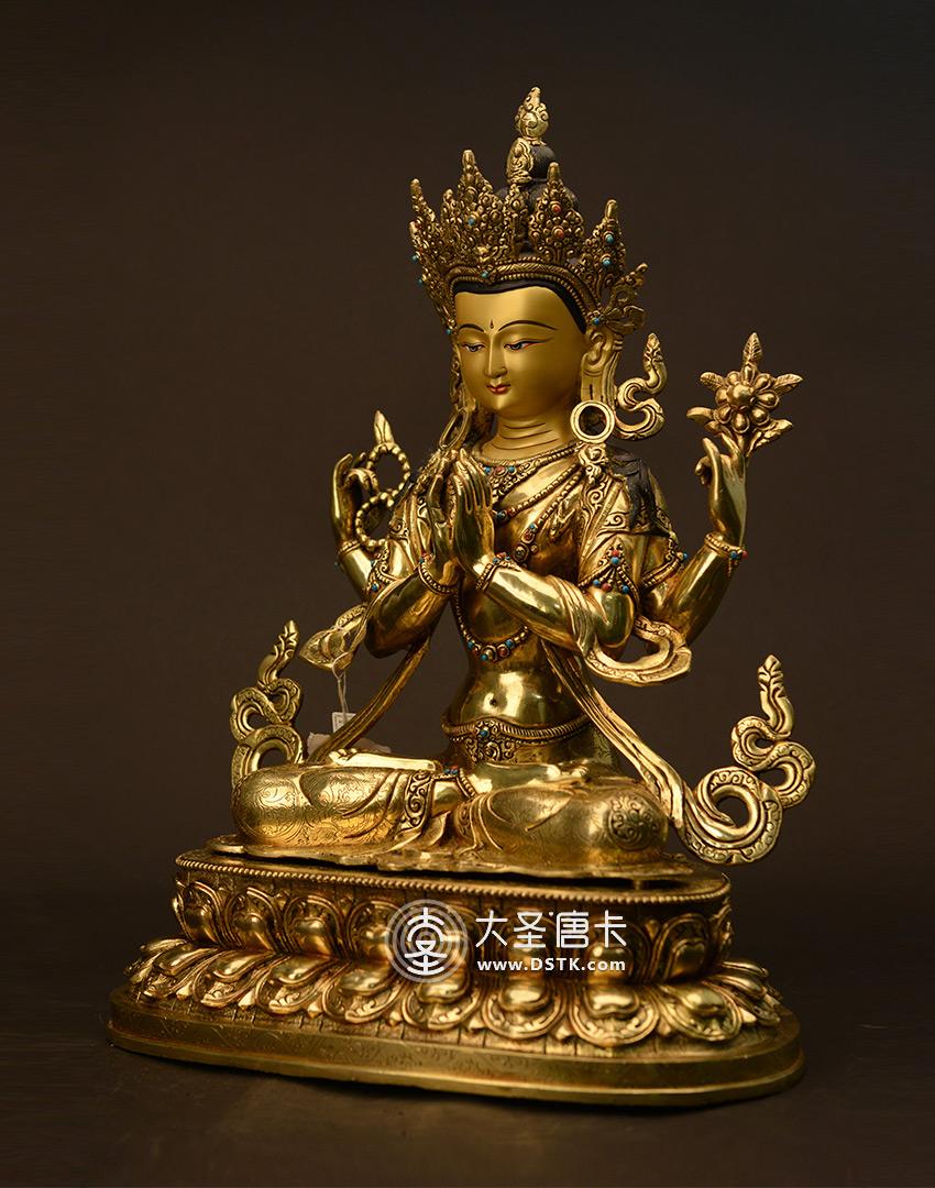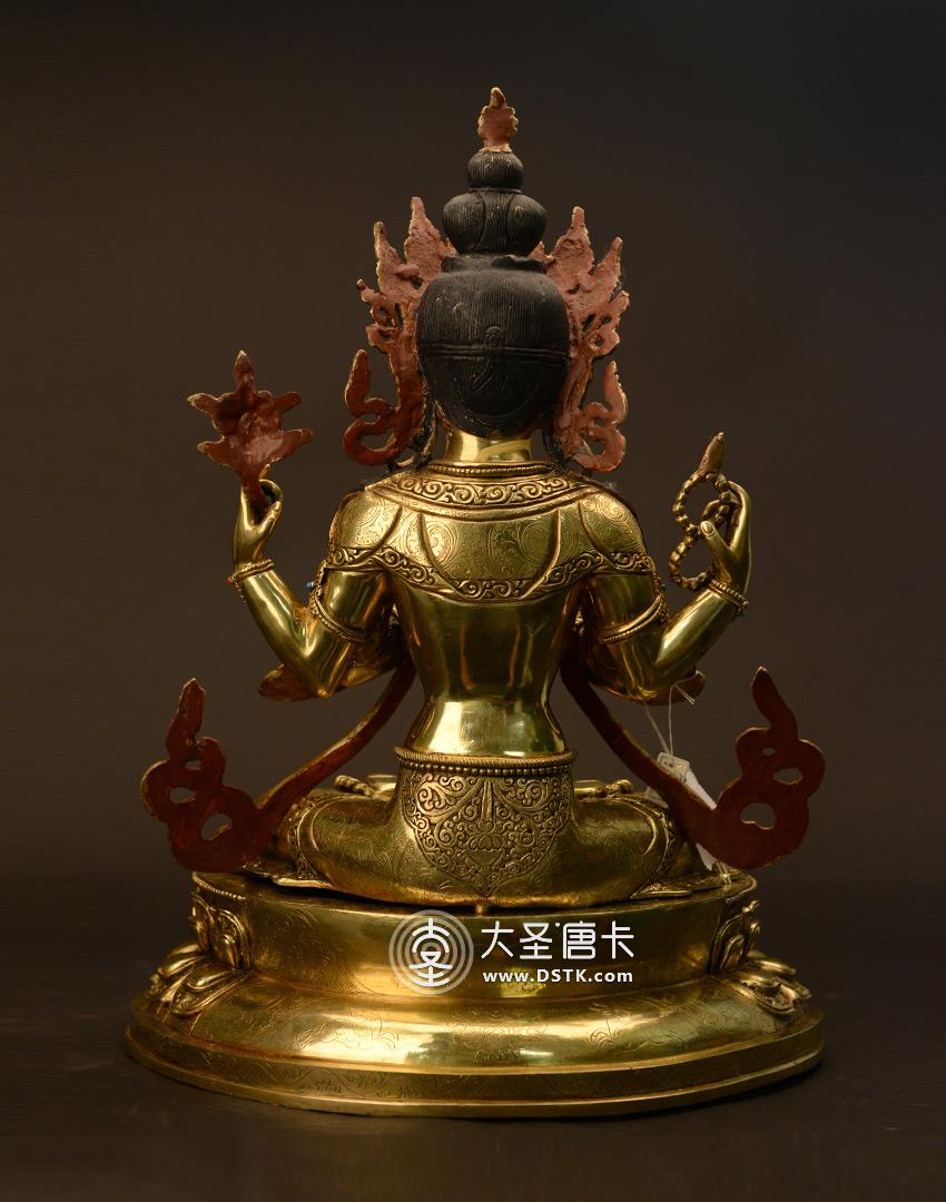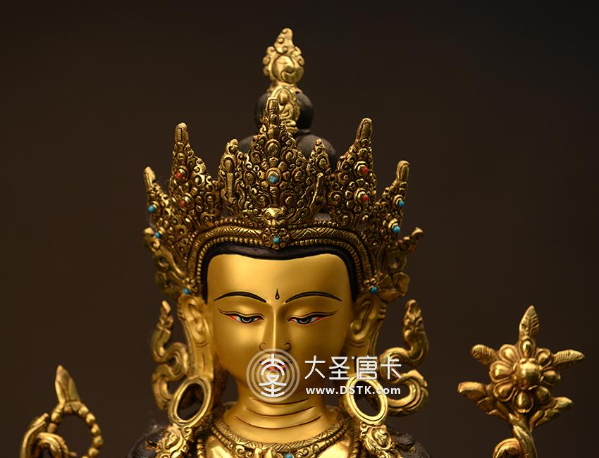 產地:尼泊爾佛像 工藝:鎏金 創作年份:2017 題材:菩薩 繪制時間:5月 尺寸:50*25*28cm 重量:0 g 材質:紫銅 使用場地:臥室