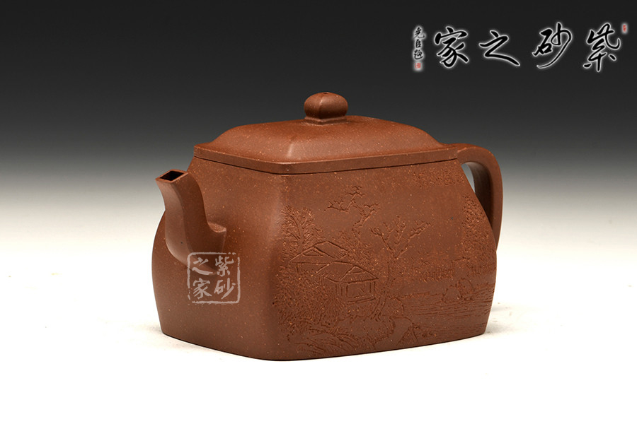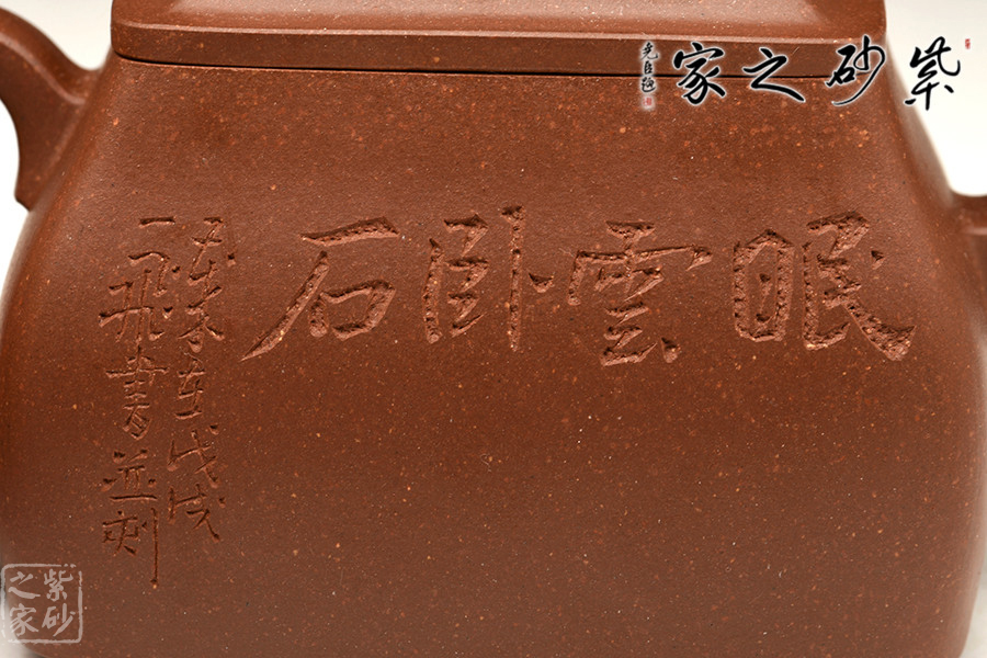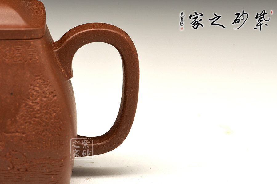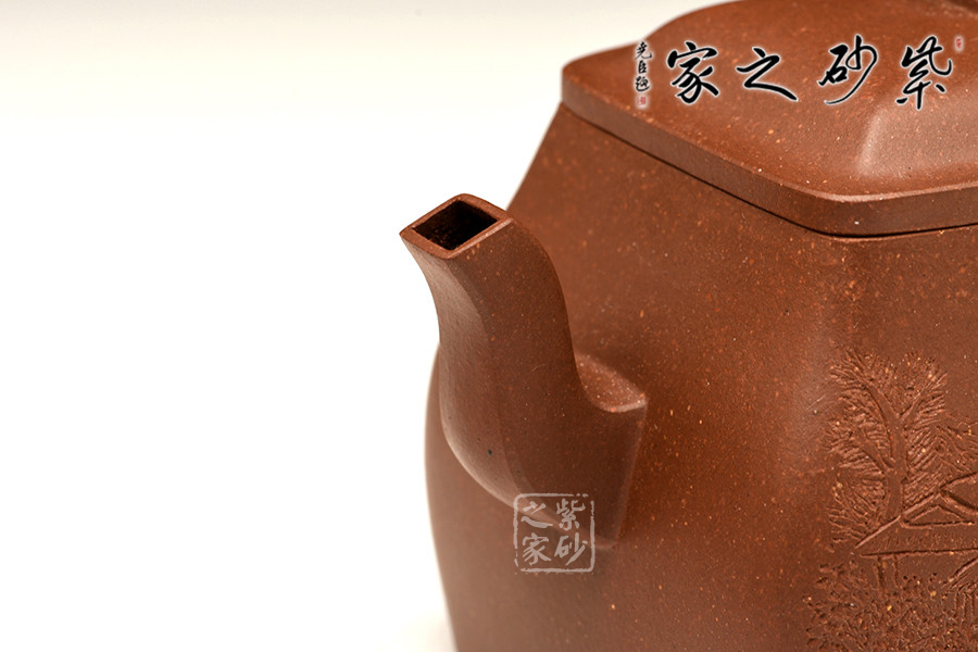 此“行方”為四方壺,四方隱于渾圓中,單純、剛正的直線化為變化、懷柔的曲線。整器造型敦龐周正,踏實的形態(tài)中顯渾厚大度、穩(wěn)健端莊,靈動的氣勢中見骨肉豐滿、樸雅大方,整壺透露出豪爽、剛勁、正直的陽剛之氣。
