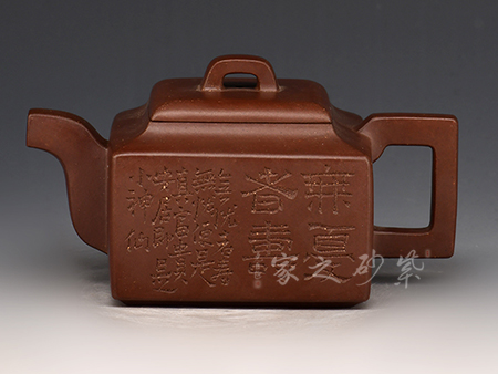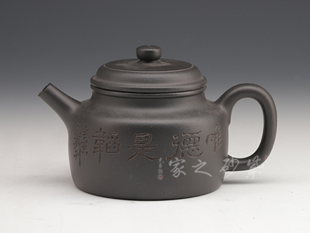 觀此壺古器雅韻,樸雅大方,作品從形式到形態(tài)超塵脫俗、別具一格。再加上作者自制自銘,詩銘書法雅健娟秀,壺藝、品茗和文人的風雅情致融為一體。