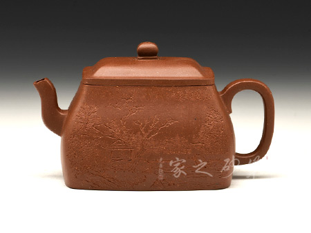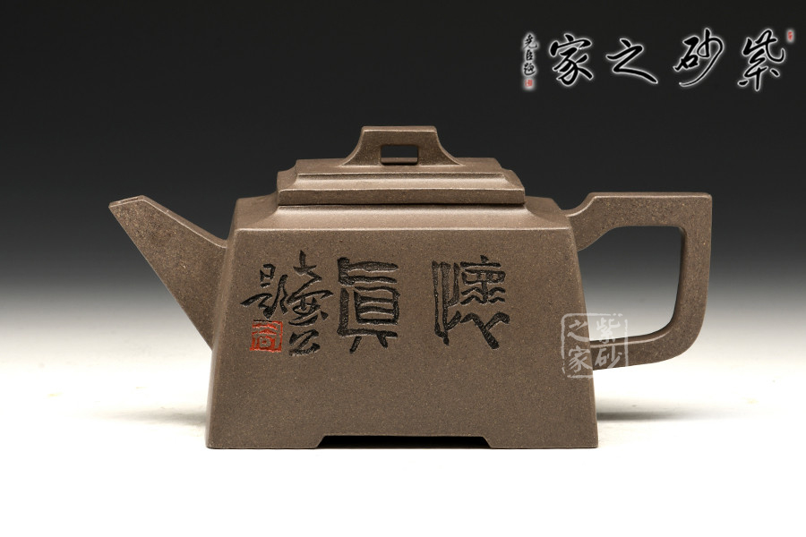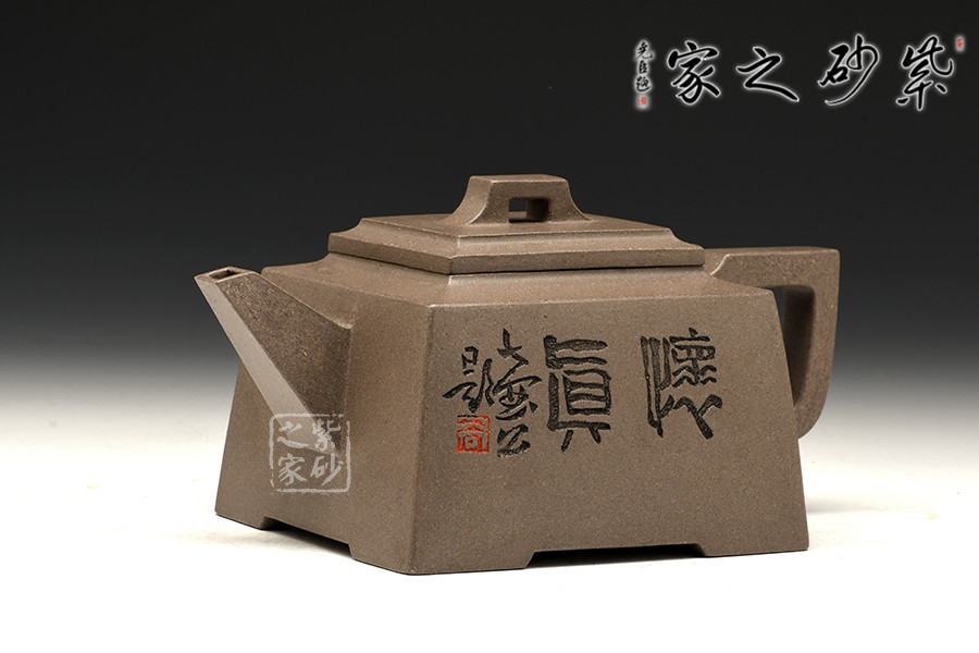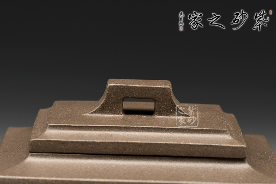 紫陶方壺,成型難度與技法遠(yuǎn)在圓器之上,通過線與面的曲直變化、角與角的過渡銜接使方器造型統(tǒng)一協(xié)調(diào),神韻俱佳。