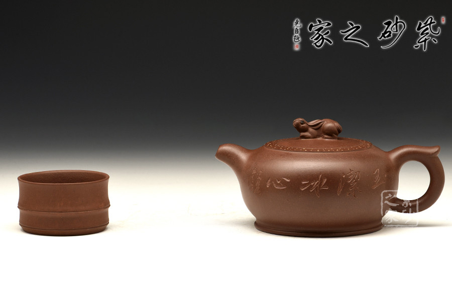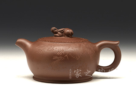 此款“玉兔壺”構(gòu)思新穎奇妙,小巧別致,給人溫潤可愛之感。此壺仿似神游人間的玉兔,自由蹦跳于山林田野之間,活潑、美好的意味盡顯。