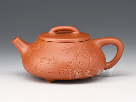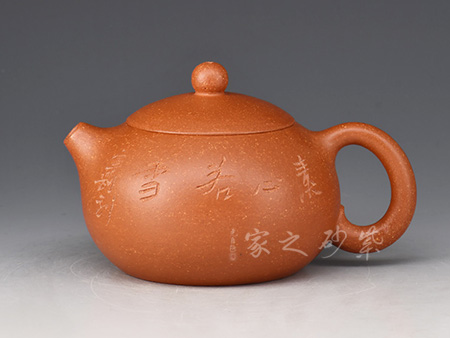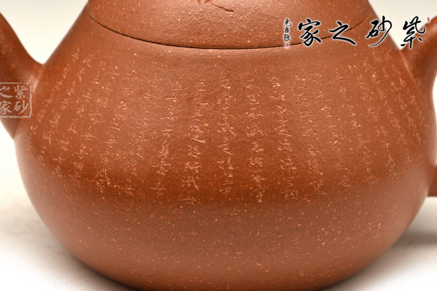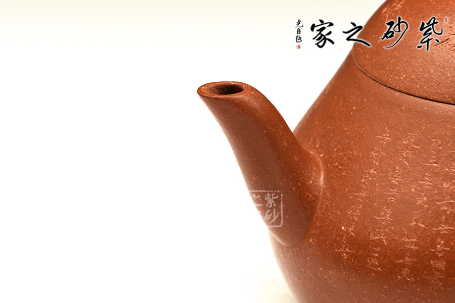 泥性:原礦因含緞泥、紅泥、紫泥等諸多共生礦,陶之后,于深沉之“橙紅色”底上,滿佈五彩斑斕的粗細、深淺之紅、黃星斑點。