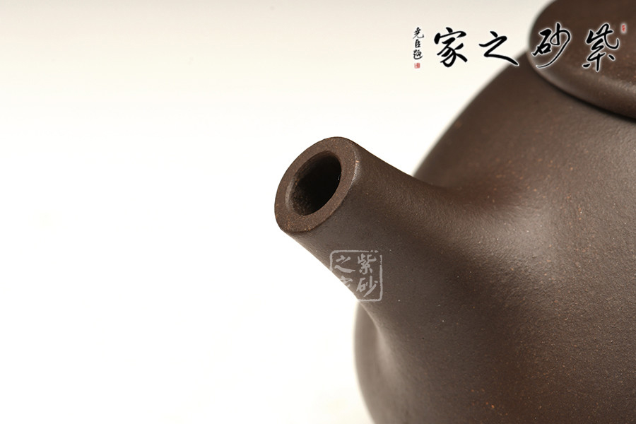壺身與壺底的銜接與轉折恰倒好處,流把和的子搭配合理。整把壺給人以精神的同時,又不給人過于銳利之感,體現(xiàn)出"骨肉均勻"的極高境界。