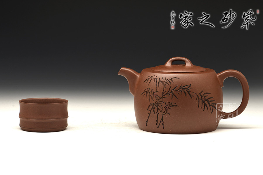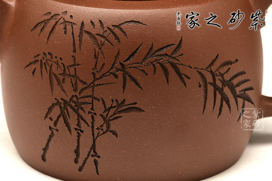 壺身由李昌鴻大師親刻裝飾,竹林風(fēng)中,“宜風(fēng)宜雨品茶賞壺”,實為閑來幸事一樁!