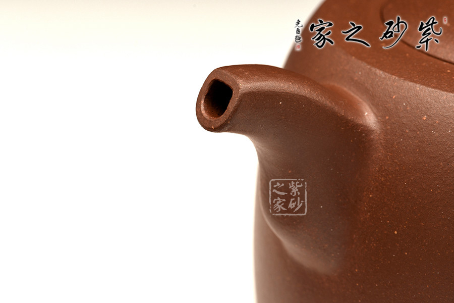此壺樣式古樸,渾厚古雅,極有韻味。井欄壺造型簡單卻無以增減,周身由弧線構(gòu)成,圓中有方,沉穩(wěn)而不凝帶。斜斜向上的管狀流和重心略為下沉的環(huán)形把,前后呼應(yīng)。
