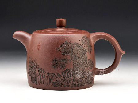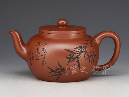 A面: 裝飾: 竹刻 裝飾者:李昌鴻 裝飾內(nèi)容: 一竹入壺,更添文氣