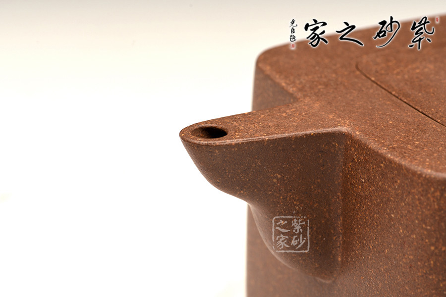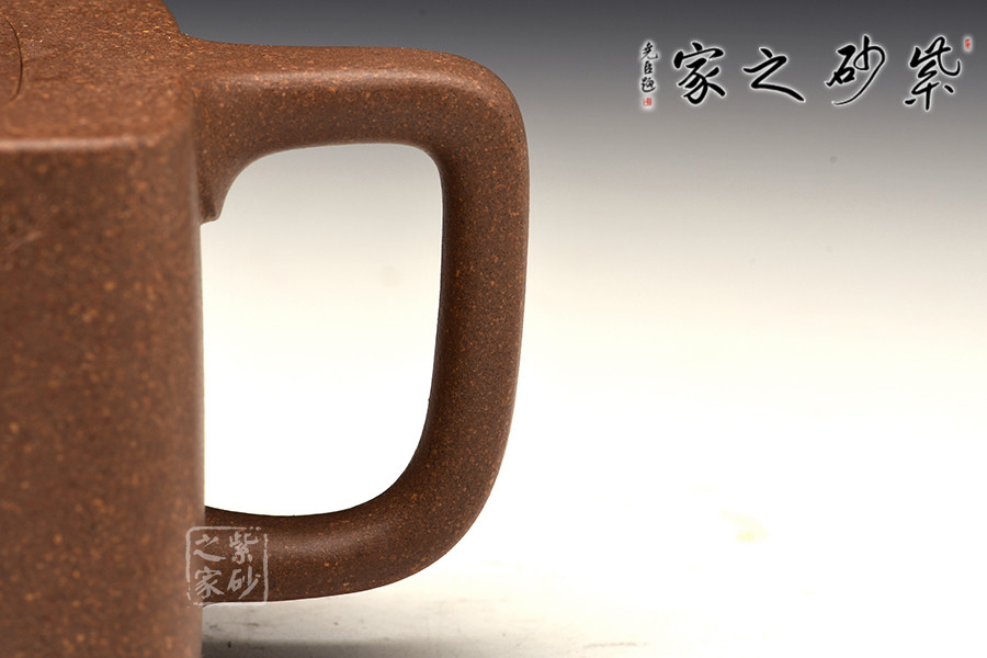 這款“回方”簡練典雅,傳統(tǒng)而富有新意。此壺做工極為精細,四條棱線由上至下分明有度,線條飽滿有張力,干凈利索,將方器特色表現(xiàn)的淋漓盡致。