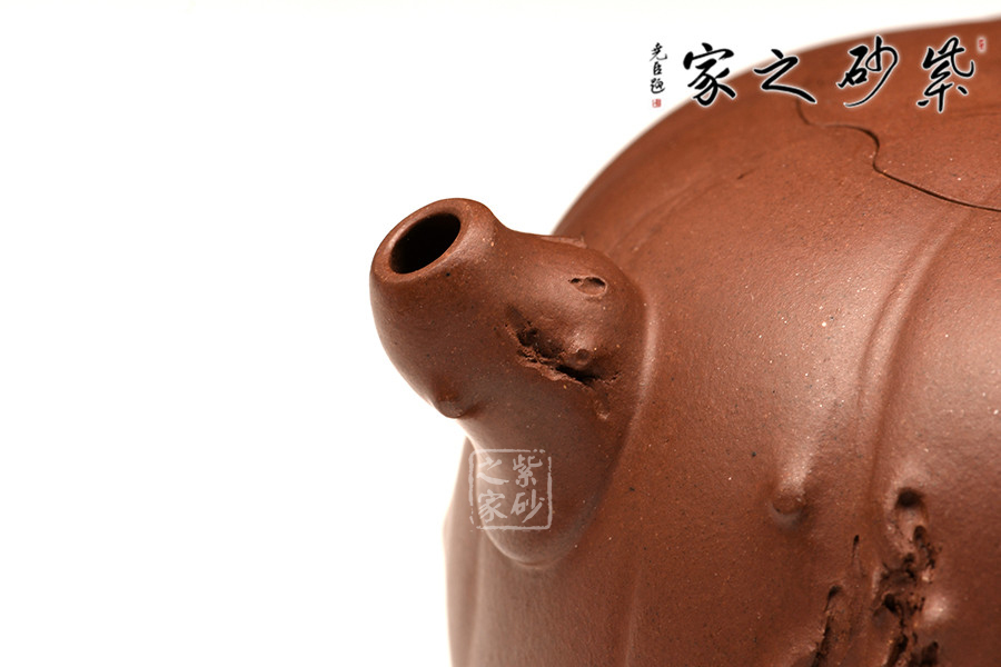 這款“沐心”形似瓜果壺,源于自然,而高于自然,作品通感給人一種清新活潑的氣息,經(jīng)藝人加工,更顯得玲瓏精巧,溫雅可愛。