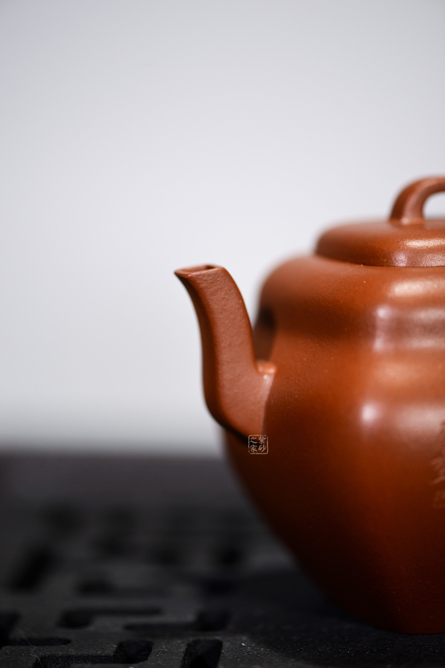 壺身由張重慶裝飾,刻繪彰顯文人氣質,形隨筆法,刀法剛勁有力,寥寥數(shù)筆,將禪意的空,凈,靈,神表現(xiàn)出來,似如智者啜墨讓人心生快慰。