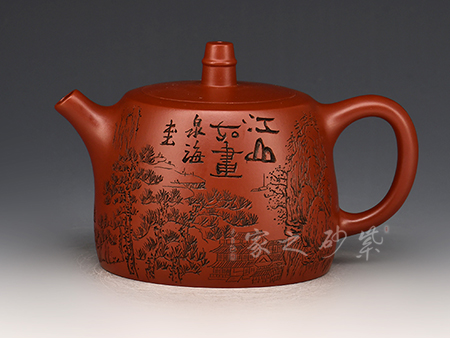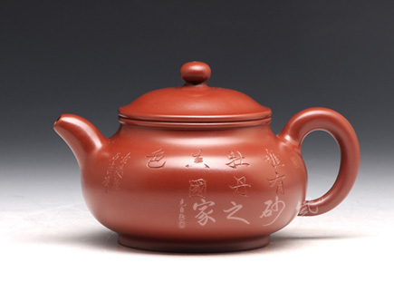 特點:質(zhì)感綿密、緊實細(xì)緻,持之扎實沉重、紅潤豔麗,泥中極品,無以倫比;泥胚含少許原礦顆粒,沖淋熱水后色變極大,呈紅中帶紫,養(yǎng)壺易現(xiàn)“包漿”之美。