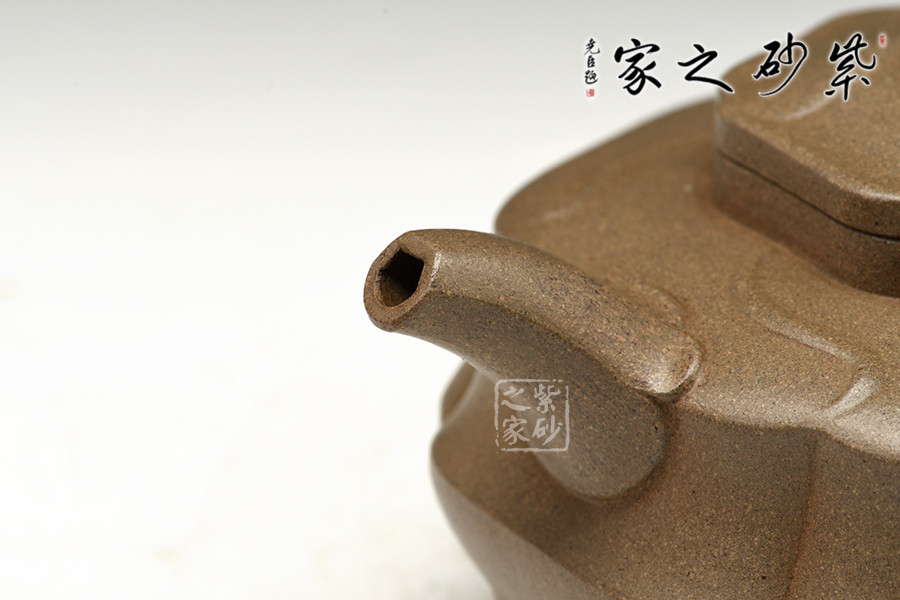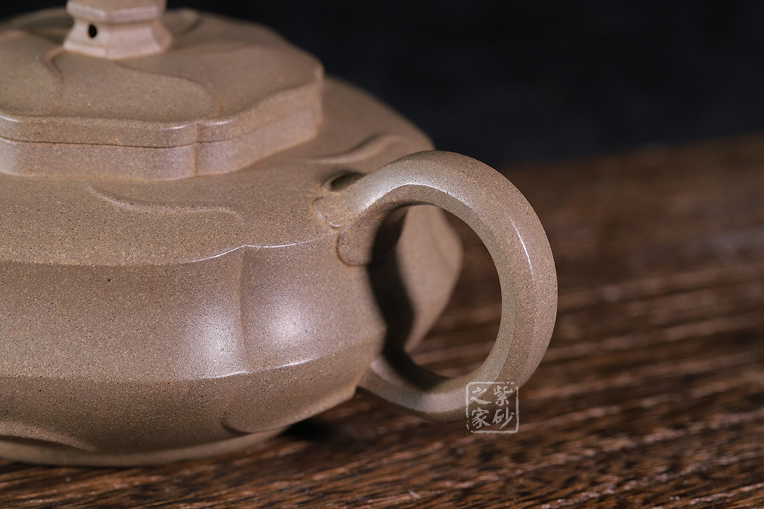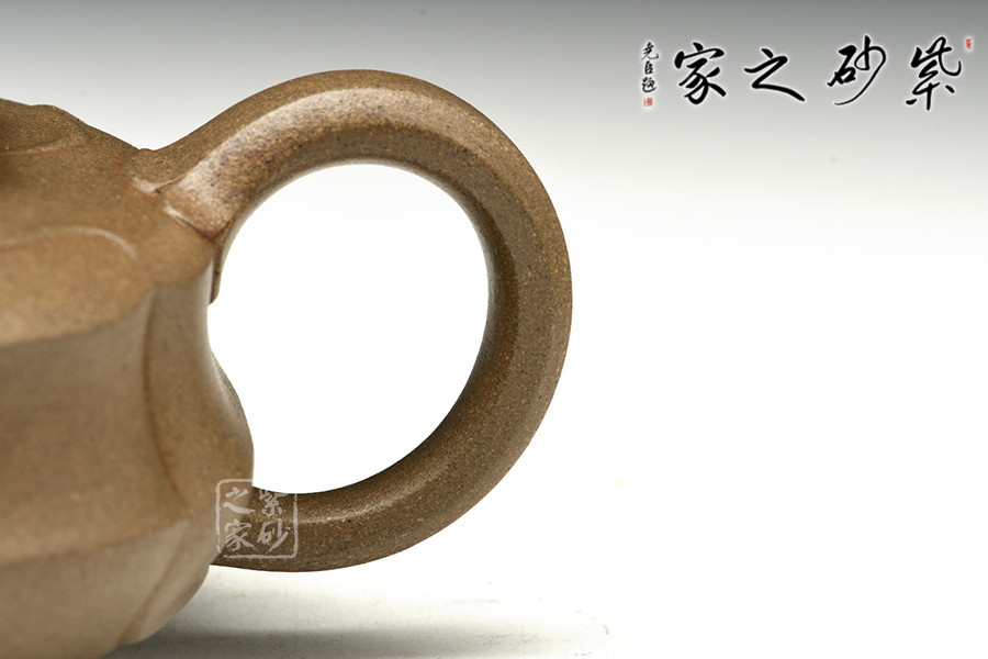 整壺風(fēng)格大氣,精妙絕倫,壺身、壺蓋處線條流暢自如,看似簡單,整體看來卻極具設(shè)計(jì)感。壺嘴、環(huán)把兩相呼應(yīng),更顯此壺一種簡約之處現(xiàn)精妙之感。