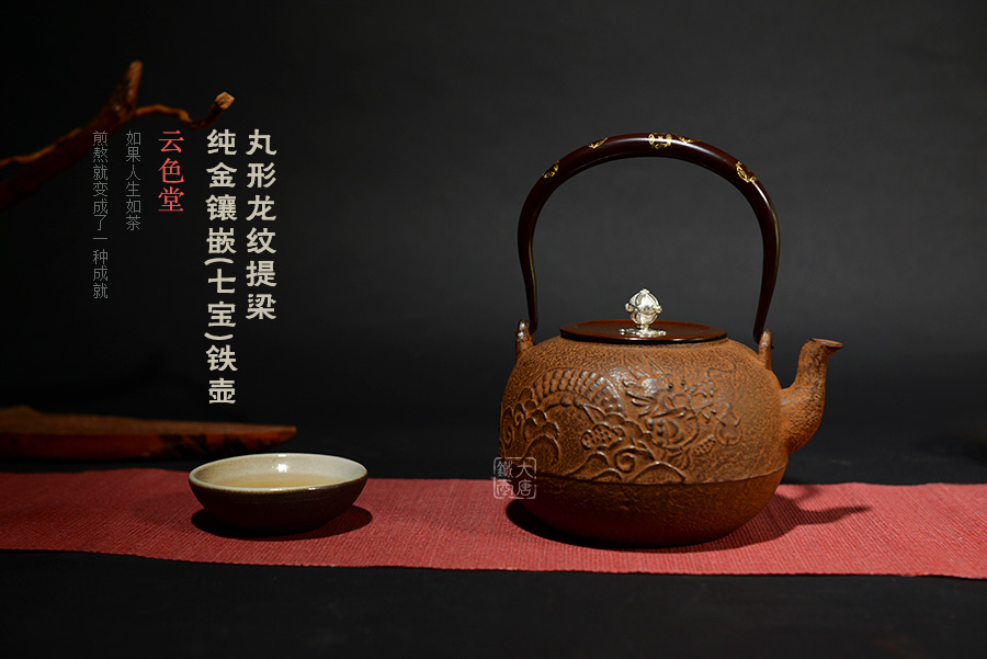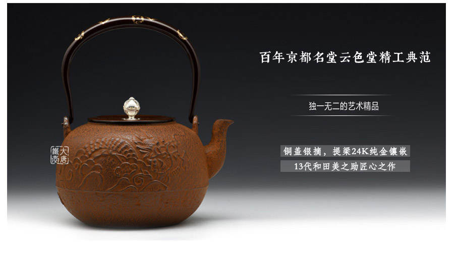 10代和田美之助親自前往雨宮金壽堂學習茶湯釜、鐵瓶的鑄造技法,深得京都鐵瓶的制作精髓。幾代人孜孜不倦努力,換來日益精進的技藝與作品。現在每天云色堂的作品都會在各地展出。如今第13代傳人和田美之助傳承京都湯釜制作工藝,鉆研并改良京都鐵瓶的古法制作技術,重現明治時期最高級京都鑲嵌鐵瓶。
