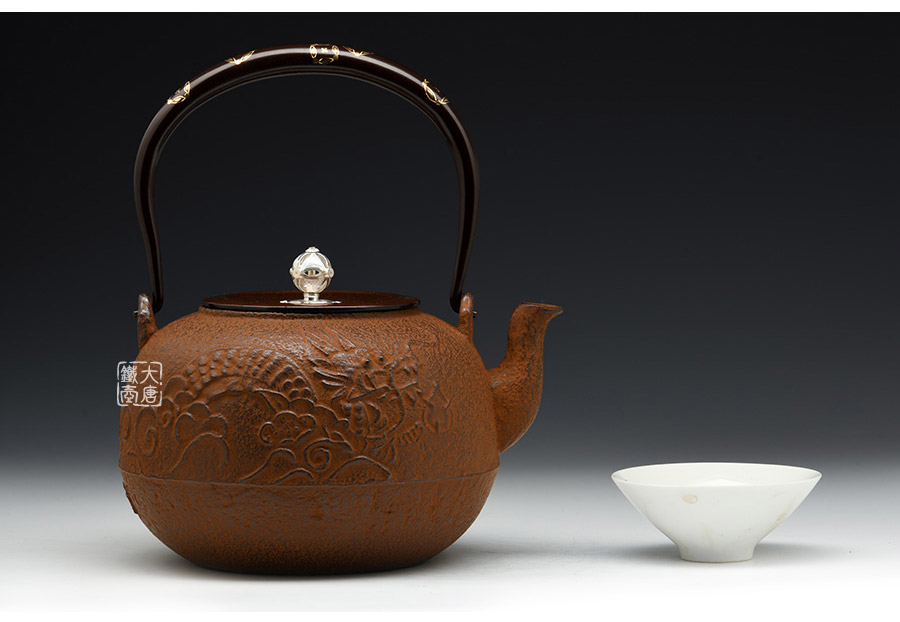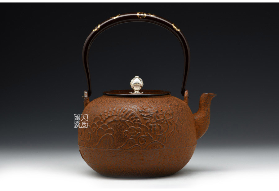 頂級名家13代和田美之助作品,壺身延續(xù)云色堂素雅格調,巖肌紋,肌理細膩美觀,祥龍栩栩如生,鑄工和金工都十分考究。