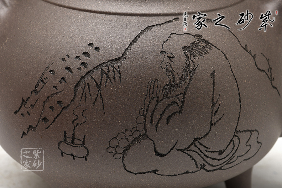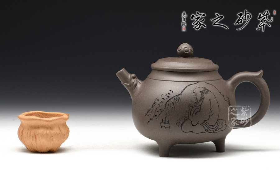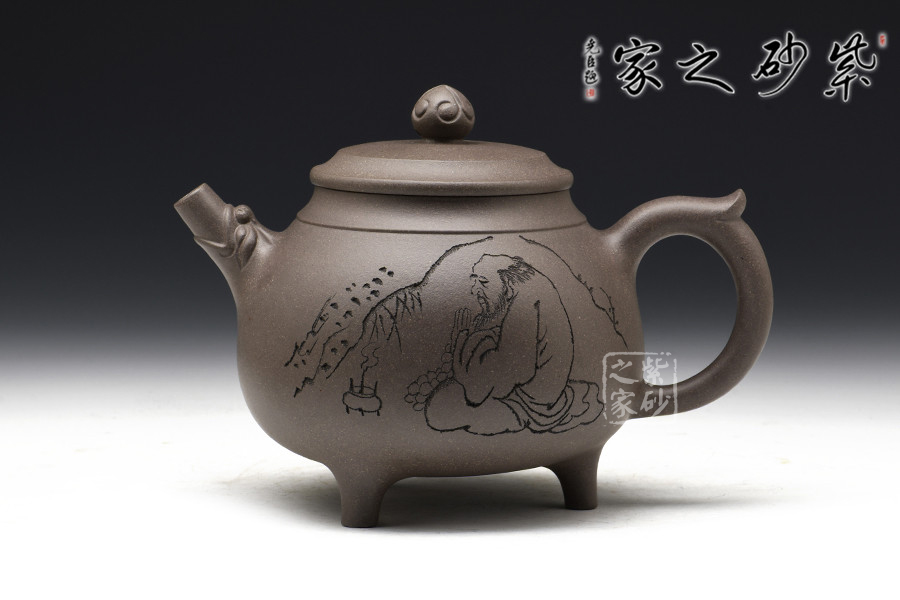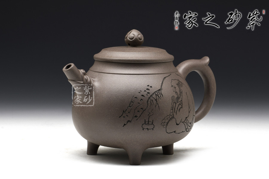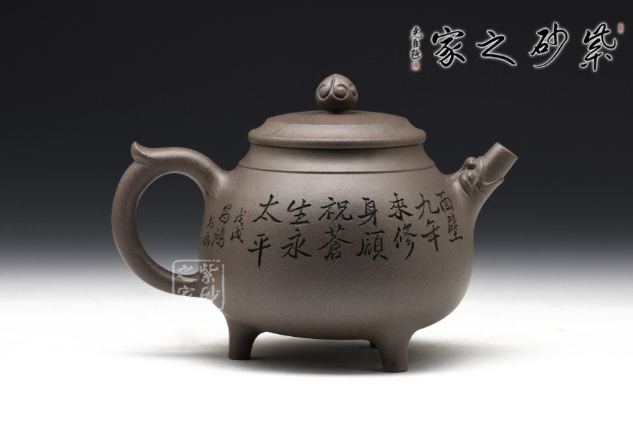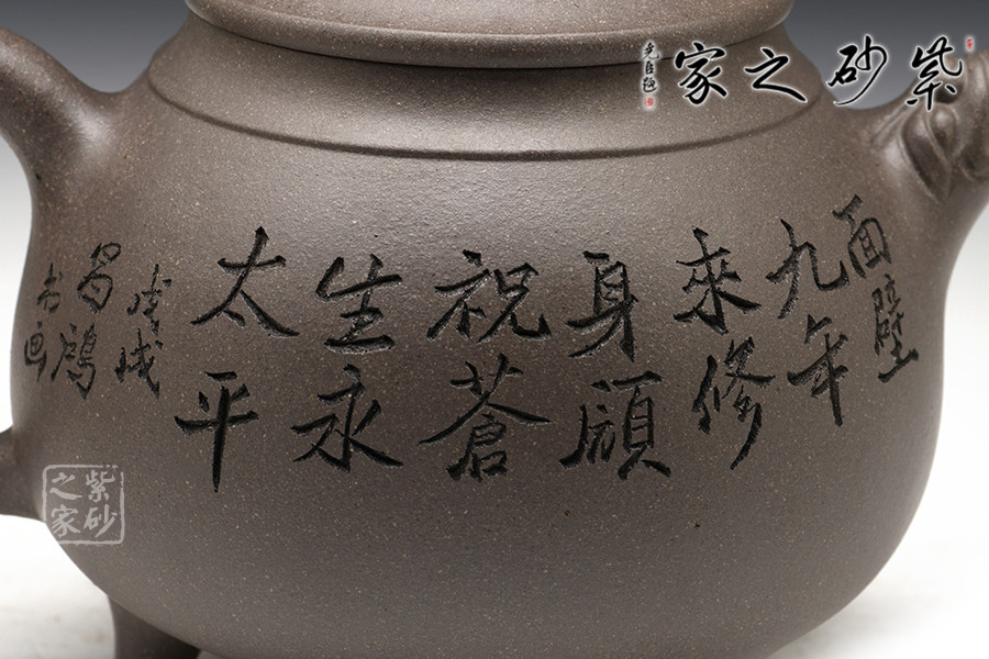 底下三足分當(dāng)鼎立,將壺托起而穩(wěn)如泰山,給人以非常古雅的美感,再加上國(guó)大師李昌鴻親刻書(shū)畫(huà),質(zhì)樸優(yōu)雅,文氣十足。