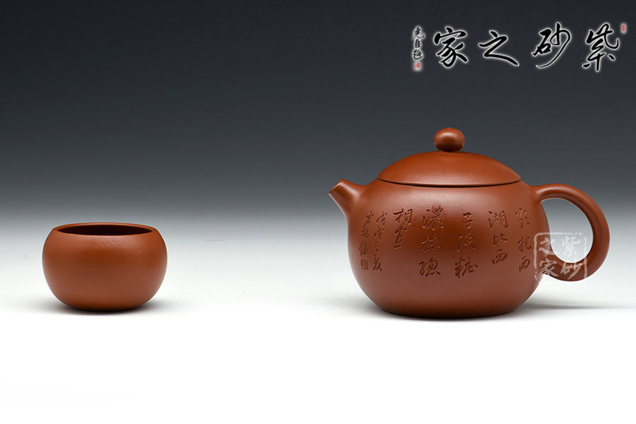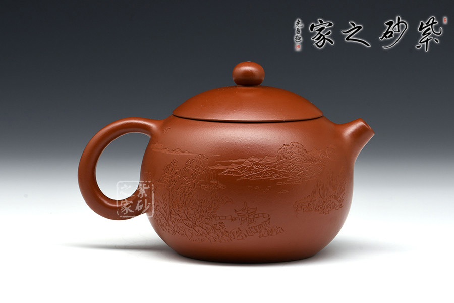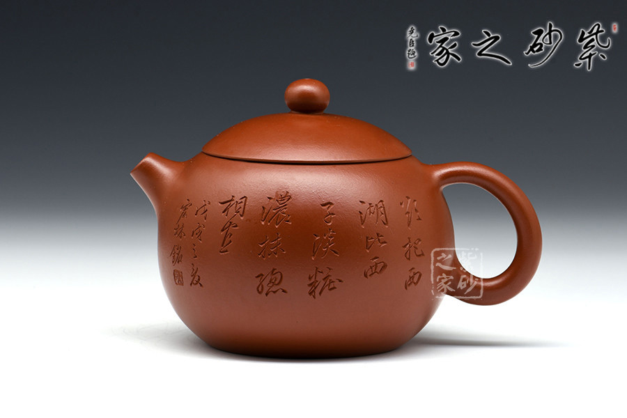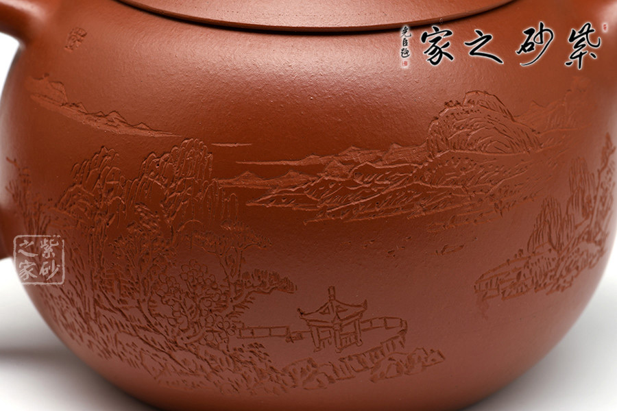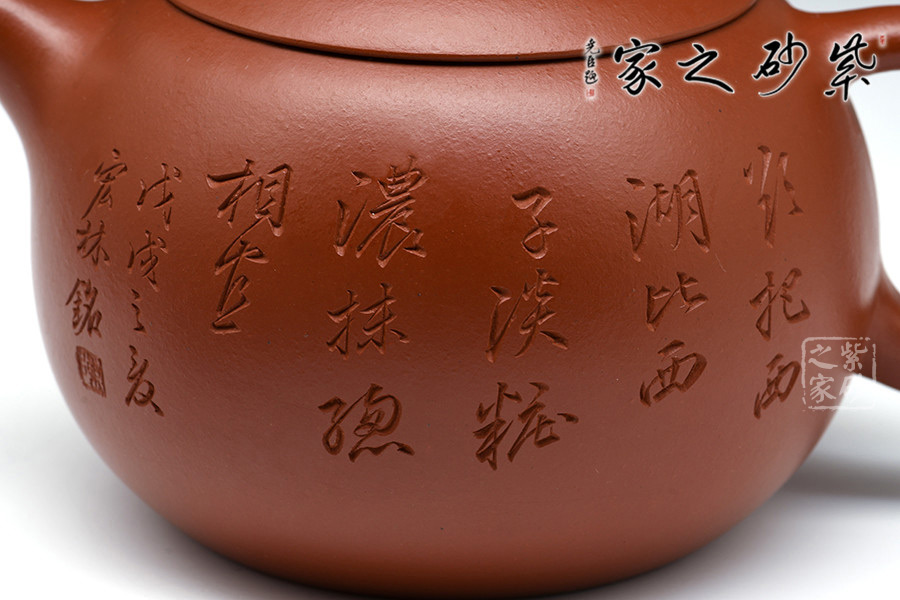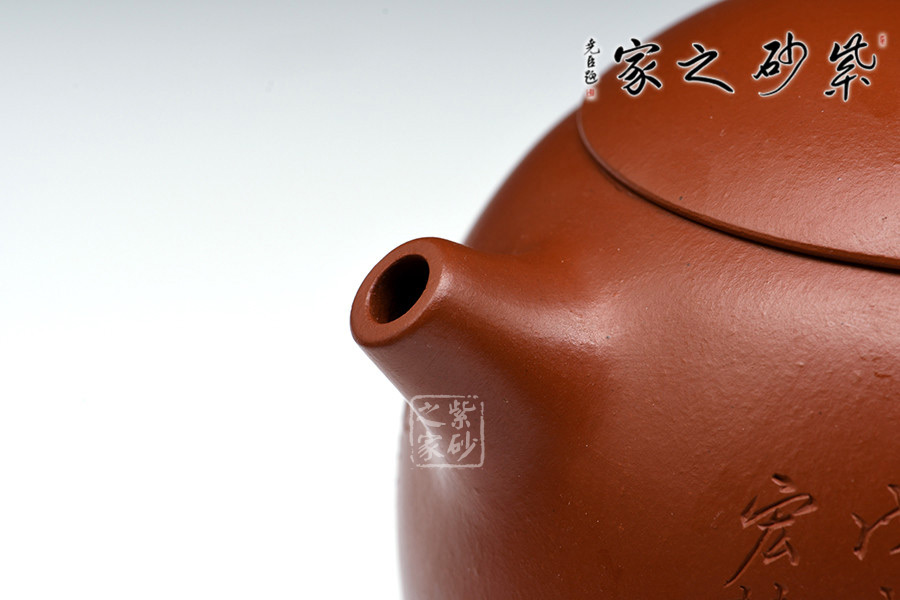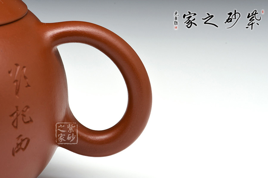 該壺精選大紅袍純手工制造,古樸優(yōu)雅,款形優(yōu)美,線條流暢,韻味十足。作者自制自銘,極現(xiàn)其絕妙的陶刻功底。