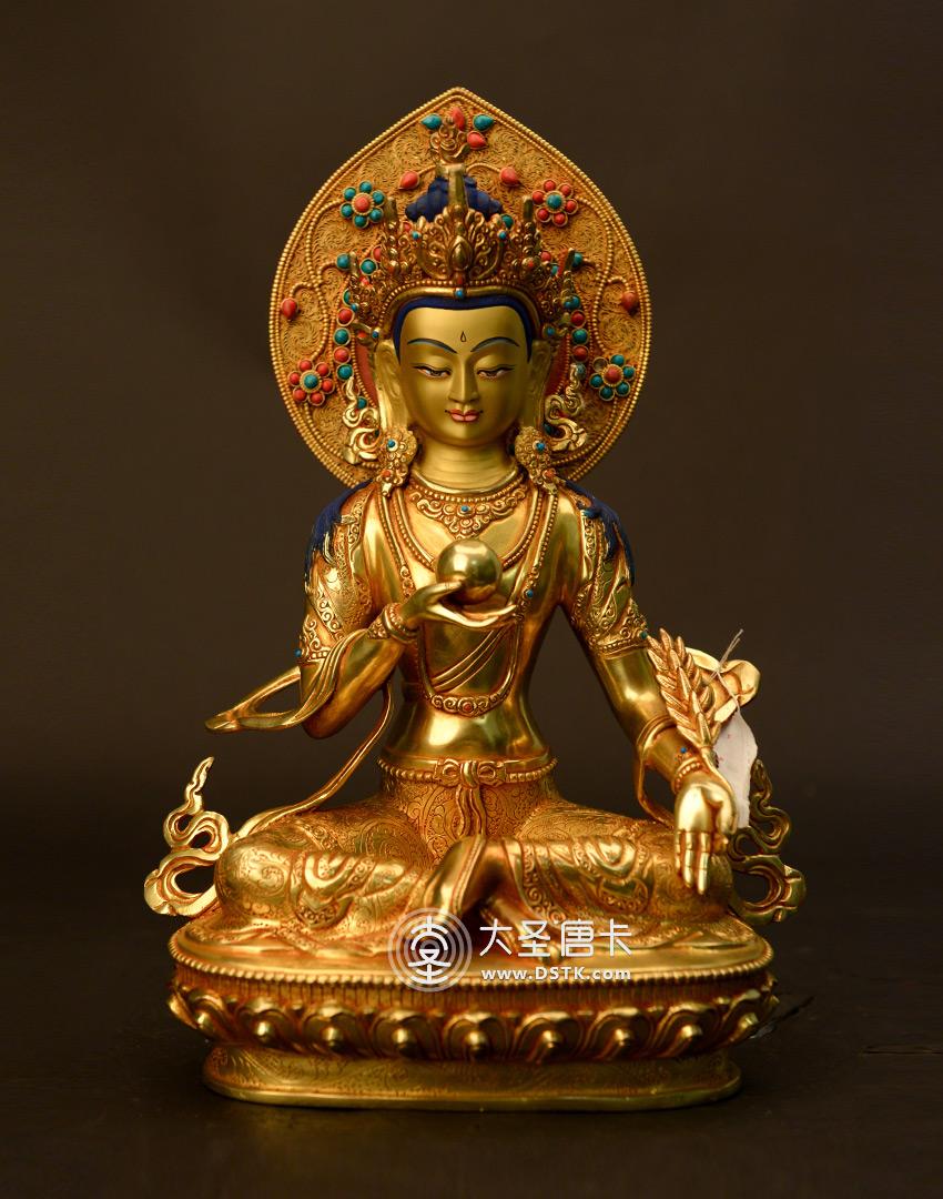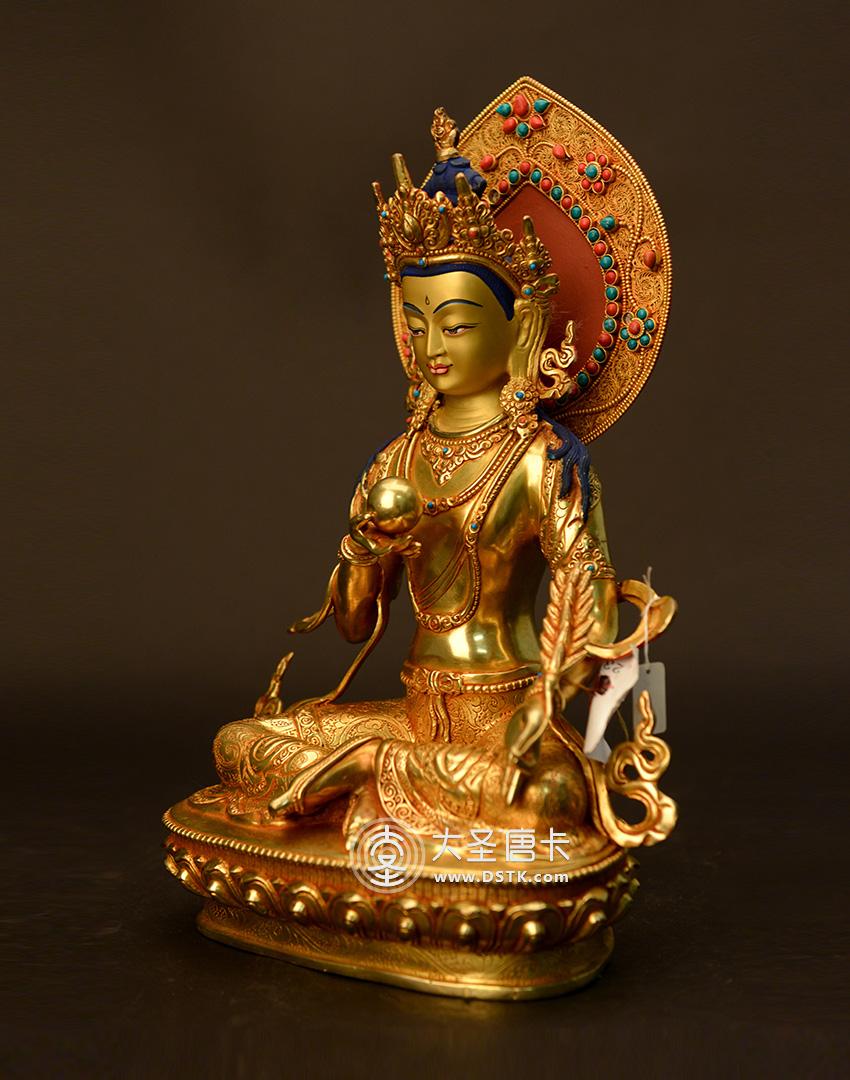 產地:尼泊爾佛像 工藝:鎏金 創作年份:2017 題材:菩薩 繪制時間:0日 尺寸:33*15*15cm 重量:0 g 材質:紫銅 使用場地:臥室