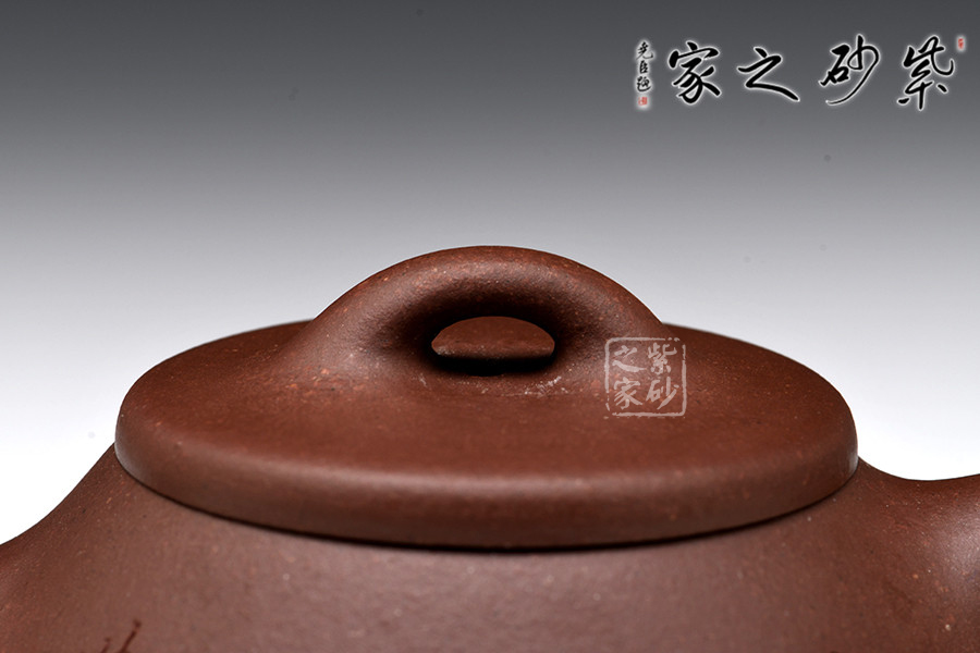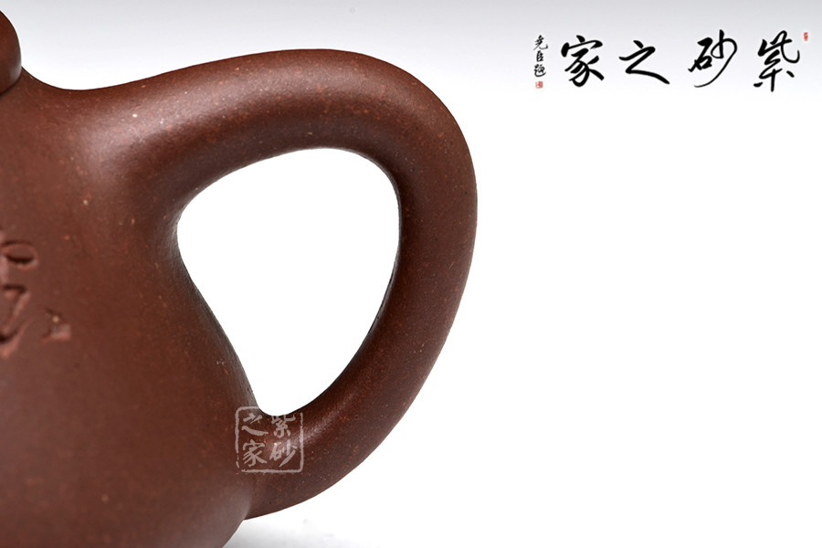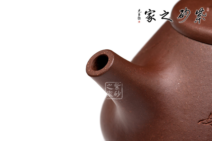 壺嘴的特色在于短小面有力,為直筒形,出水爽利,不留涓滴。壺蓋與壺身嚴(yán)絲密縫使此壺具有極高的實(shí)用性。壺鈕采用常見(jiàn)的拱橋造型,使整款壺在簡(jiǎn)單中多了一份活力。