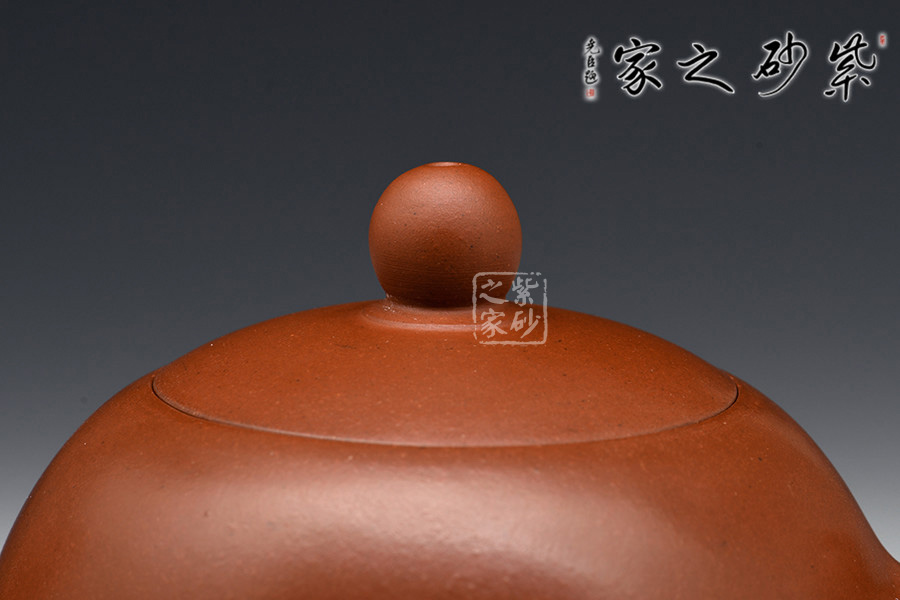 精選朱泥摶制,色紅而精光內(nèi)斂,樸靜幽遠(yuǎn),甚是美艷光潔。作品在靜態(tài)的形象上實(shí)現(xiàn)了空間的延伸,整體畫(huà)面處理的靜如秋水,賞之十分有情調(diào)。