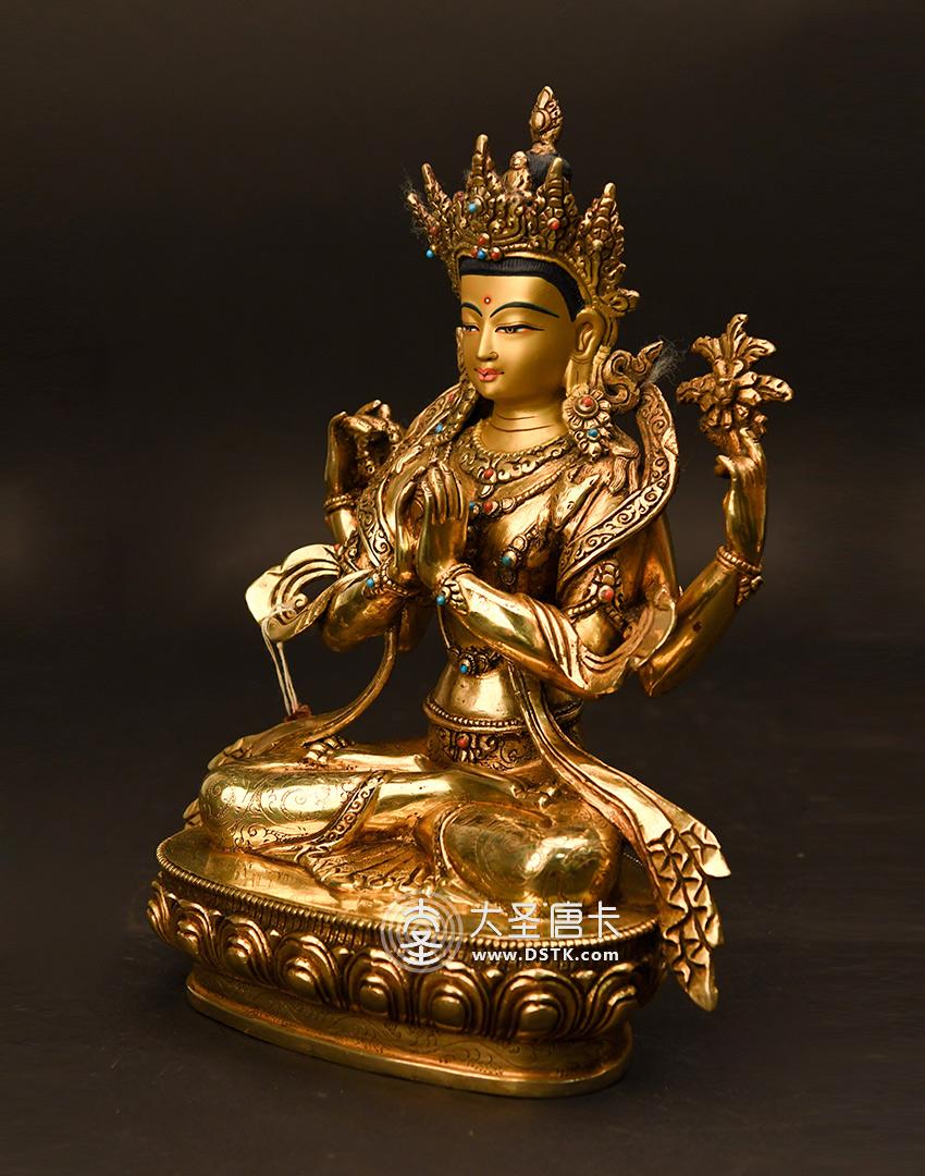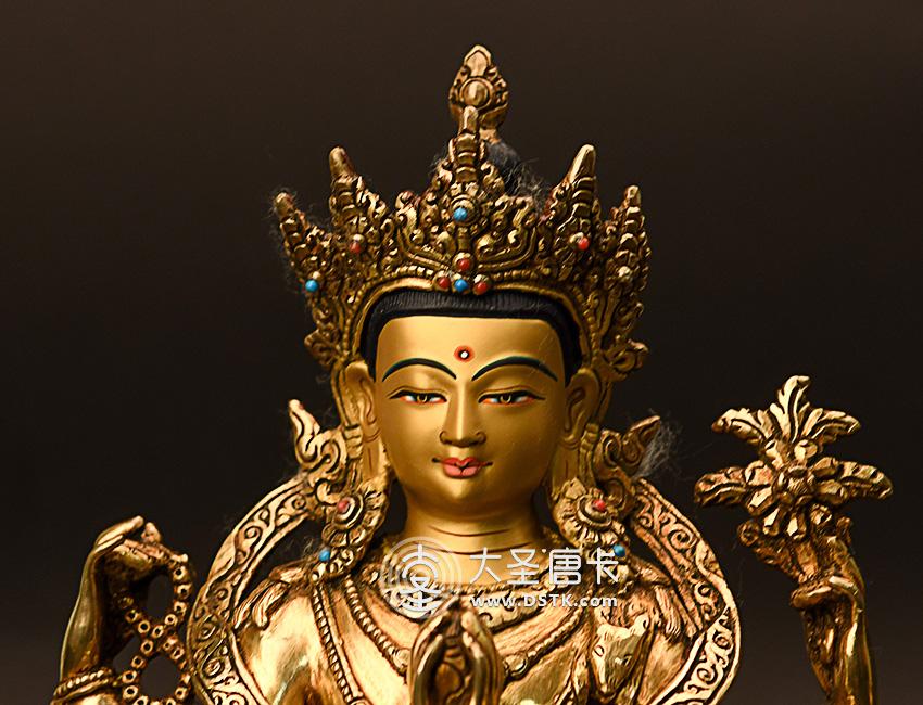 產地:尼泊爾佛像 工藝:鎏金 創作年份:2017 題材:菩薩 繪制時間:0日 尺寸:23*12*15cm 重量:0 g 材質:紫銅 使用場地:書房