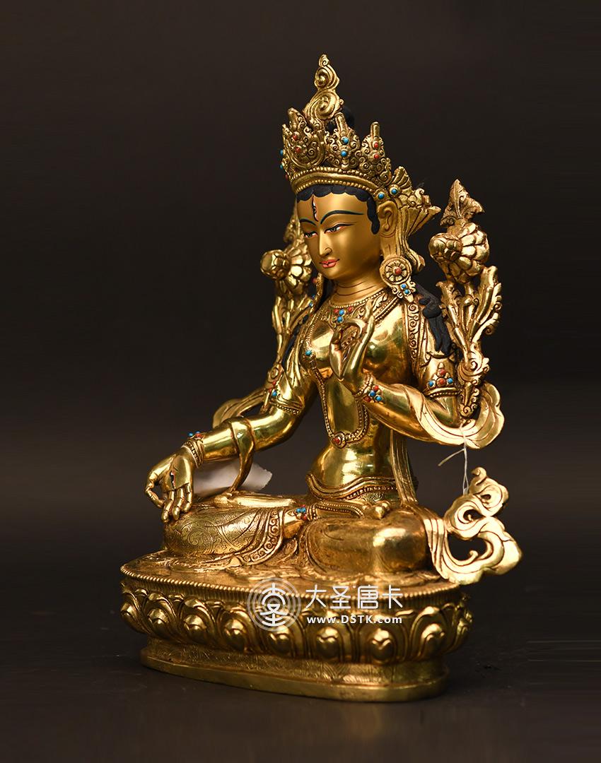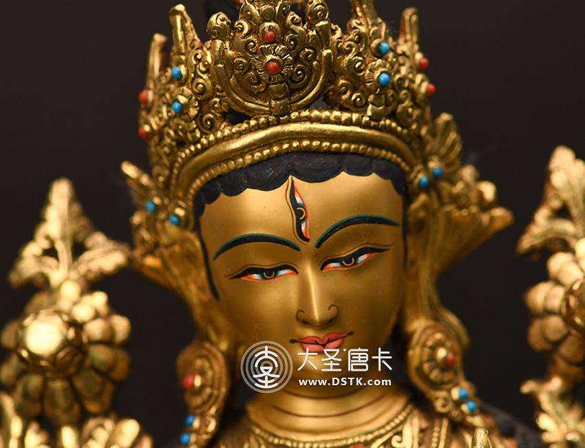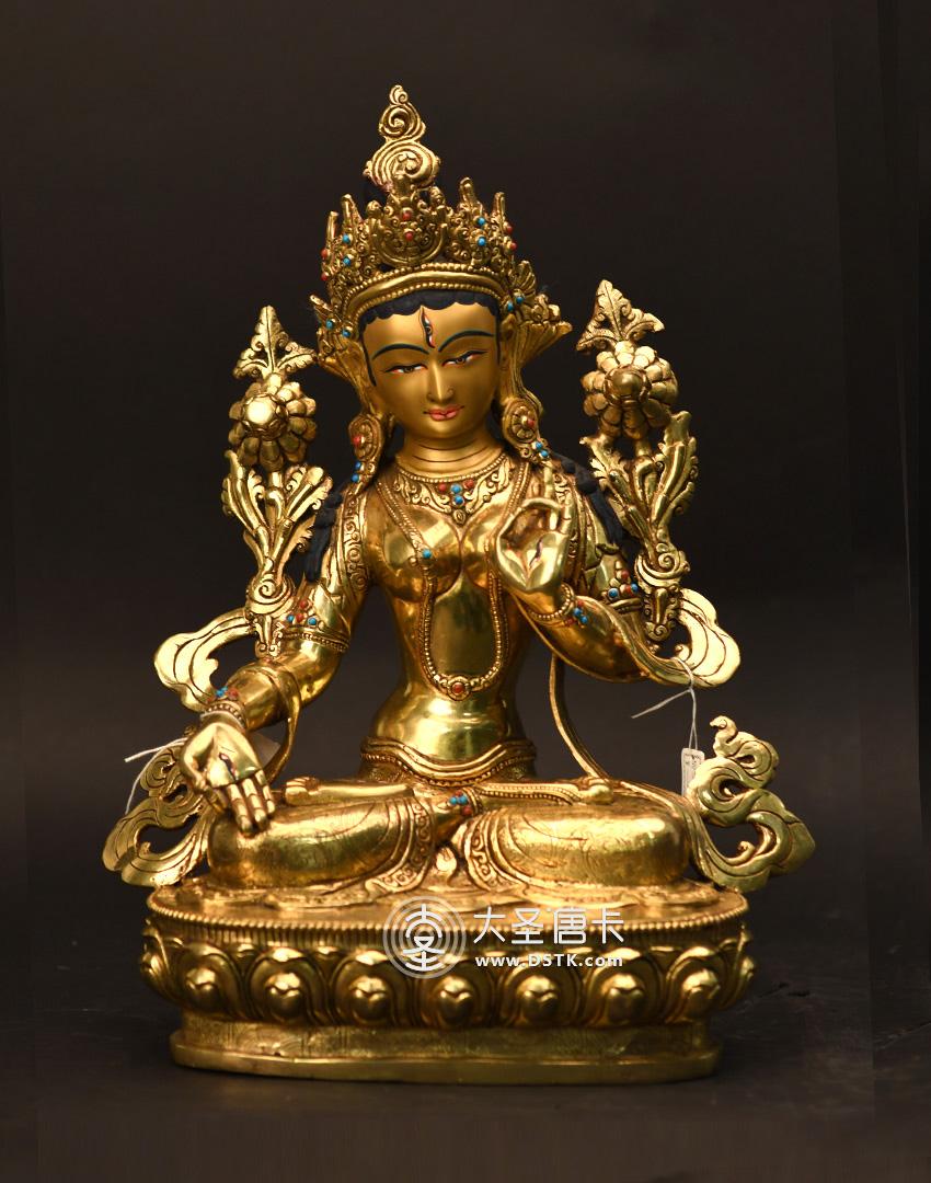 產地:尼泊爾佛像 工藝:鎏金 創作年份:2017 題材:佛母 繪制時間:111日 尺寸:33*15*18cm 重量:0 g 材質:紫銅 使用場地:書房