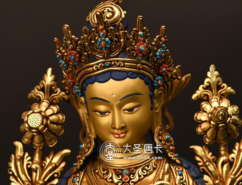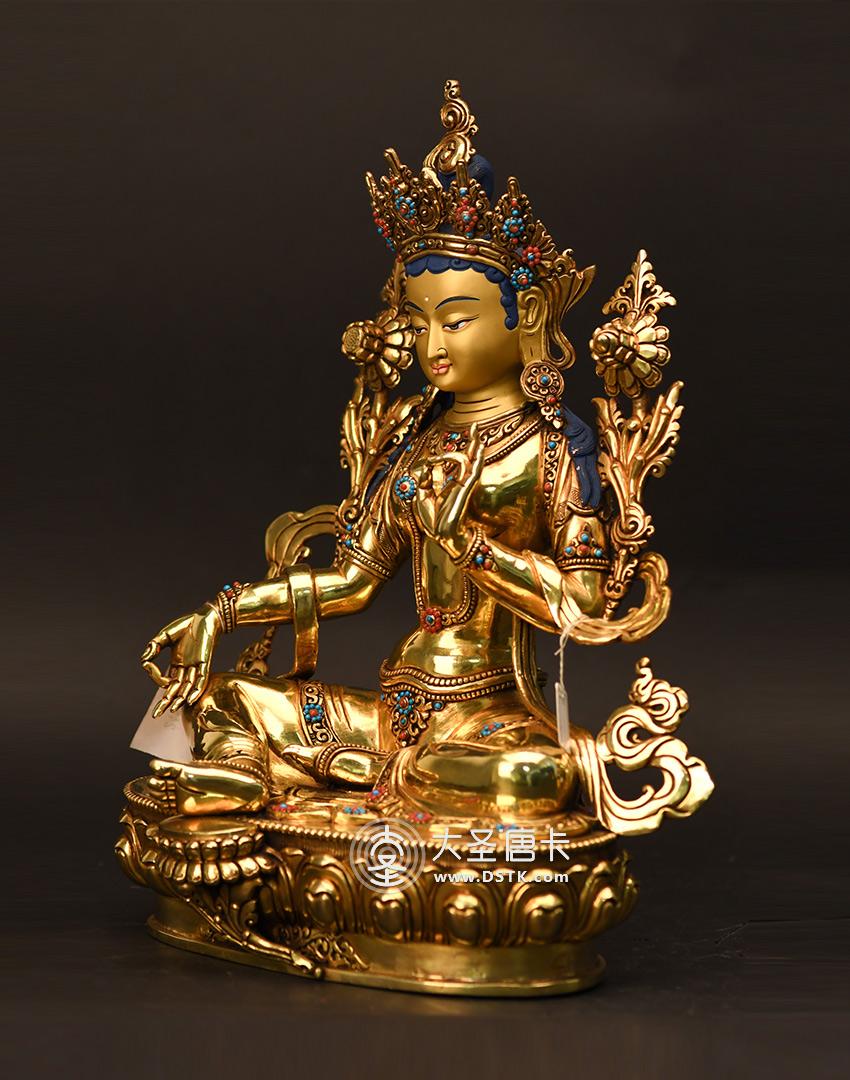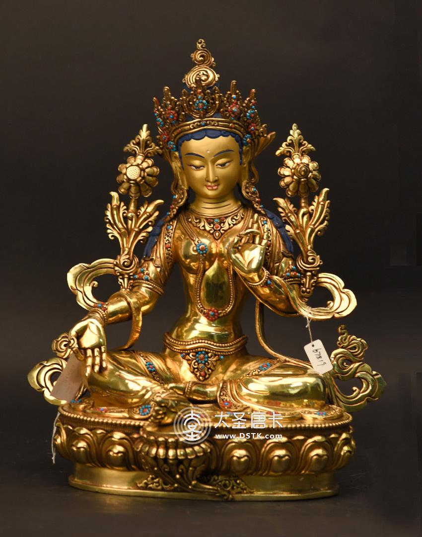 產地:尼泊爾佛像 工藝:鎏金 創作年份:2017 題材:佛母 繪制時間:1日 尺寸:33*15*18cm 重量:0 g 材質:紫銅 使用場地:臥室