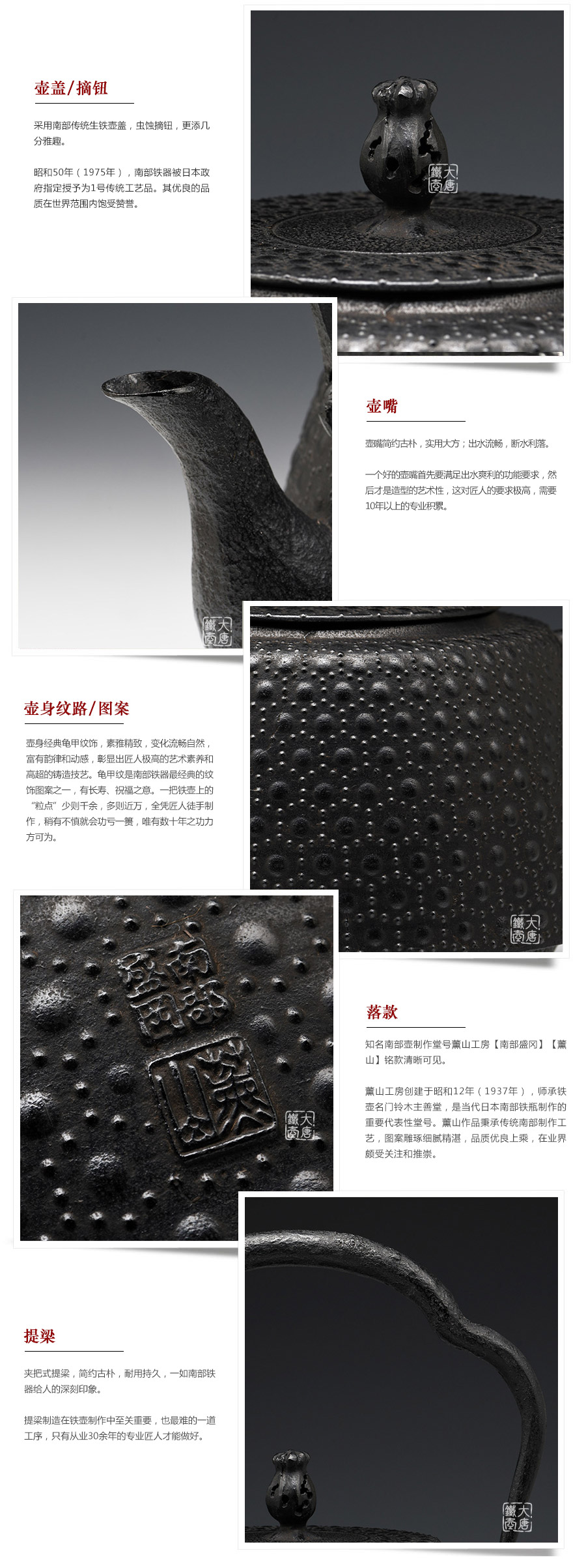 薰山工房匠心典范,南部傳統(tǒng)手工工藝,經(jīng)典九重形,壺身經(jīng)典龜甲紋飾,素雅精致,變化流暢自然,富有韻律和動感。
