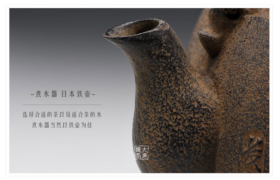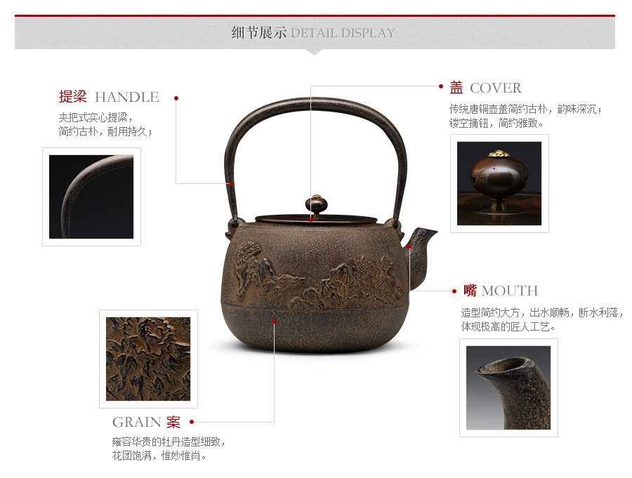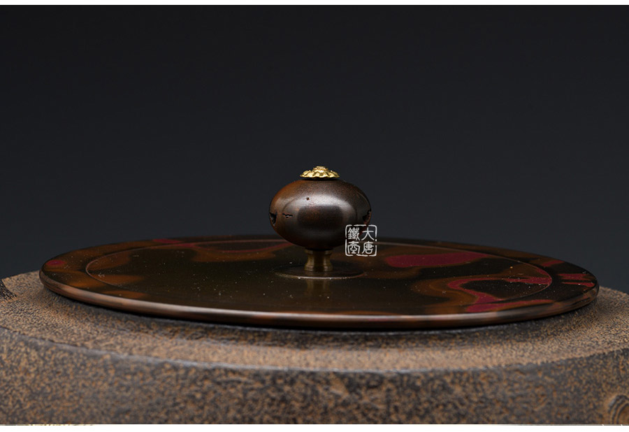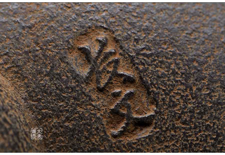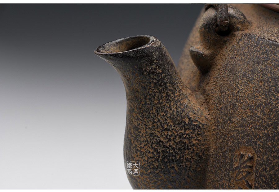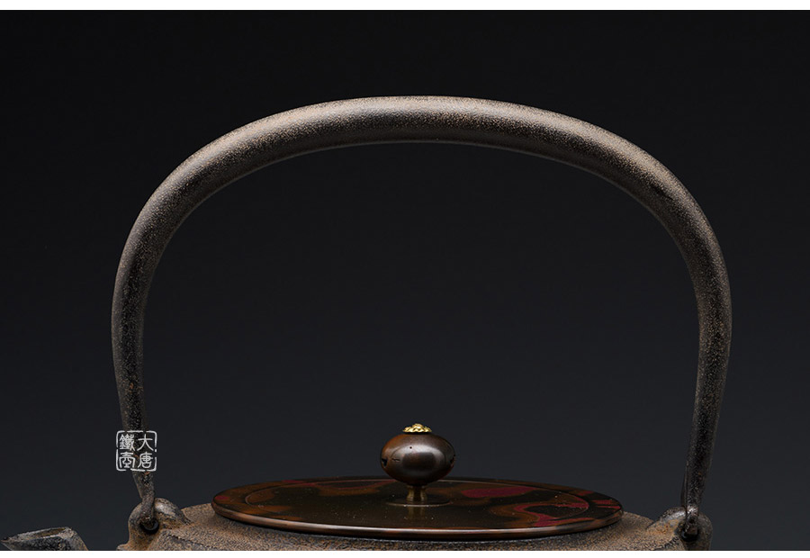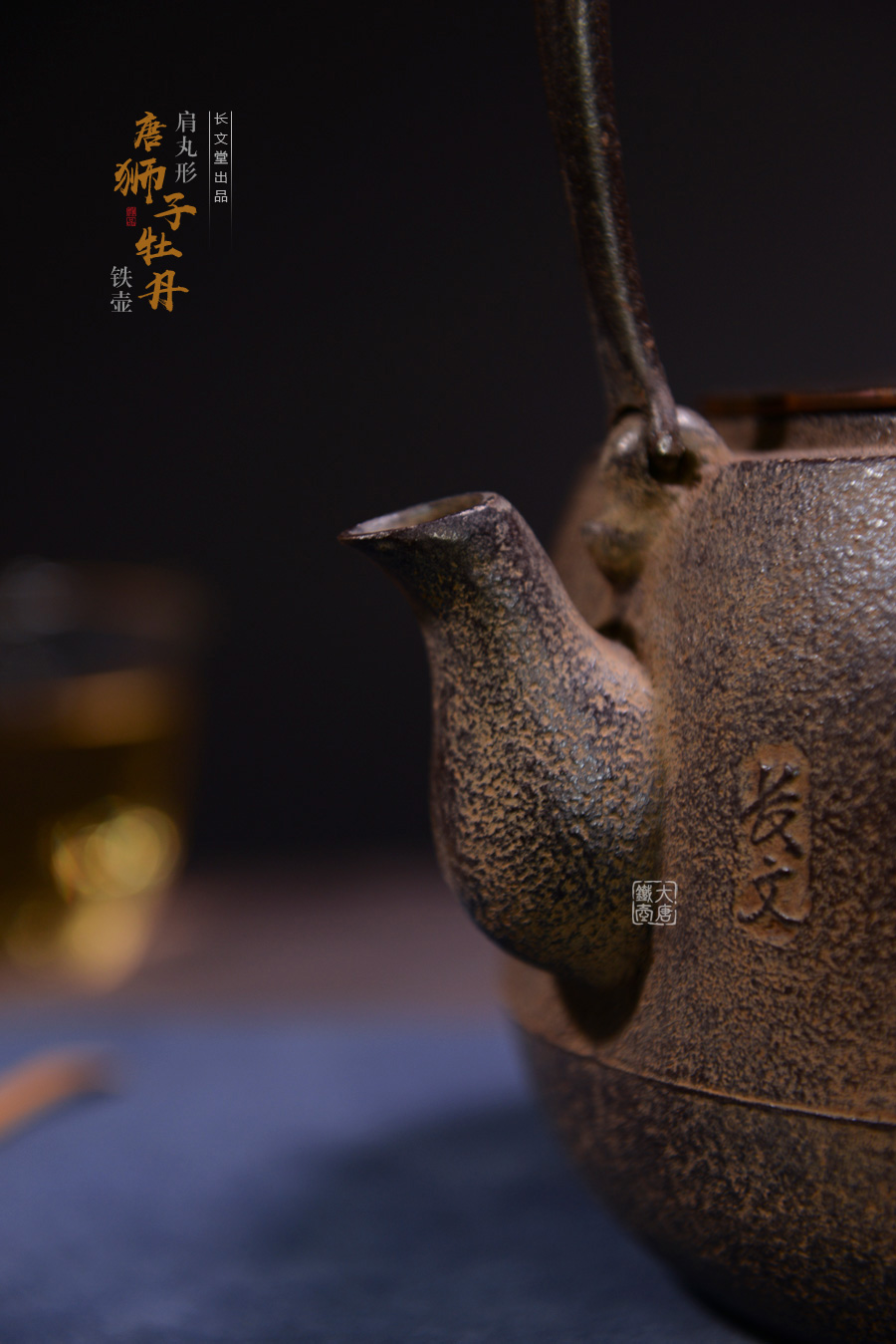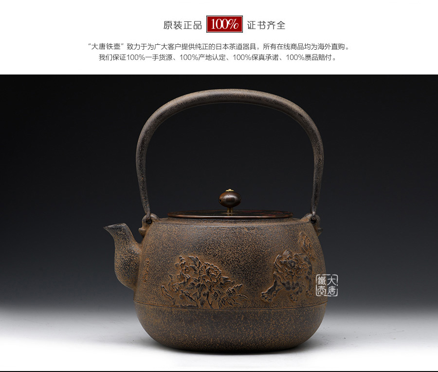 長文堂 肩丸形唐獅子牡丹鐵壺 [ 編號:68667 ]