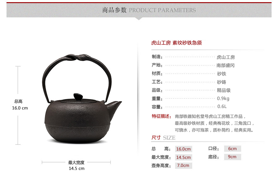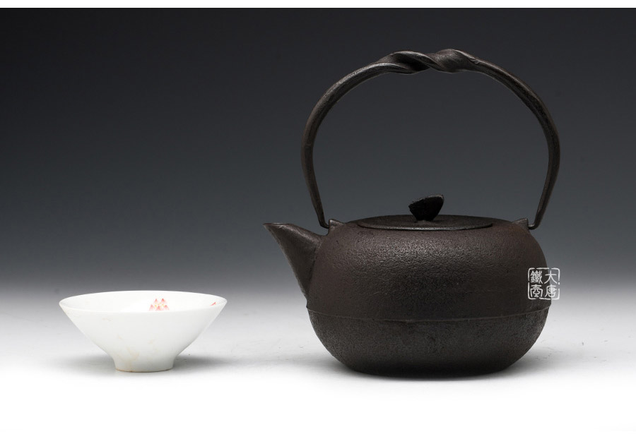 南部鐵器知名堂號虎山工房精工作品,最高級砂鐵材質(zhì),經(jīng)典素紋,蝴蝶摘鈕,三角流口,可燒水,亦可泡茶,質(zhì)樸簡約,經(jīng)典實用。