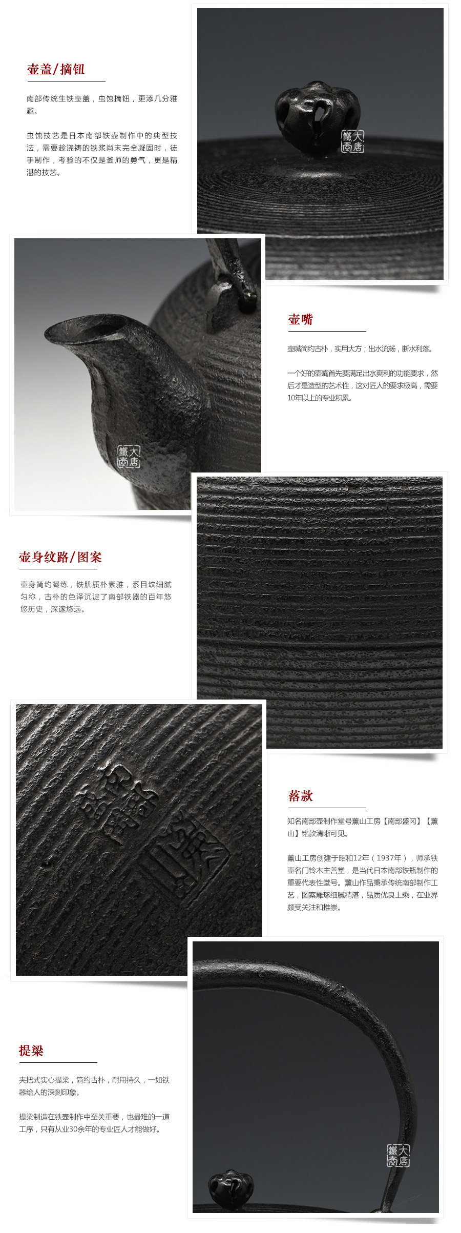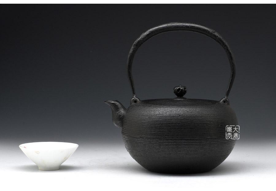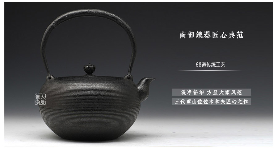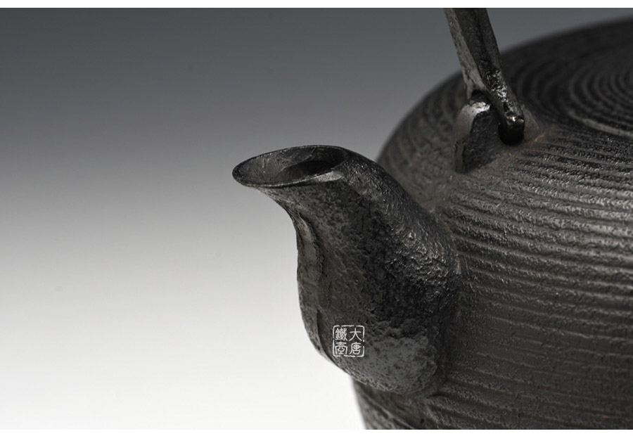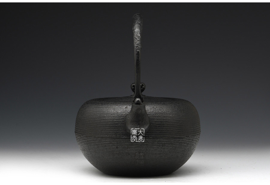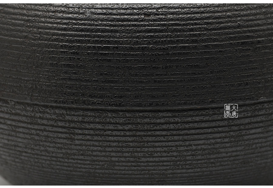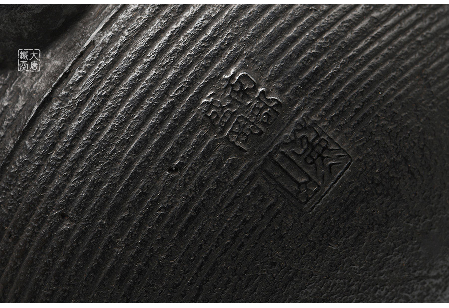 南部鐵器知名堂號(hào)薰山工房作品,傳統(tǒng)手工工藝,鐵缽造型端莊穩(wěn)重,系目紋精致規(guī)整,簡(jiǎn)約古樸,韻味渾厚。