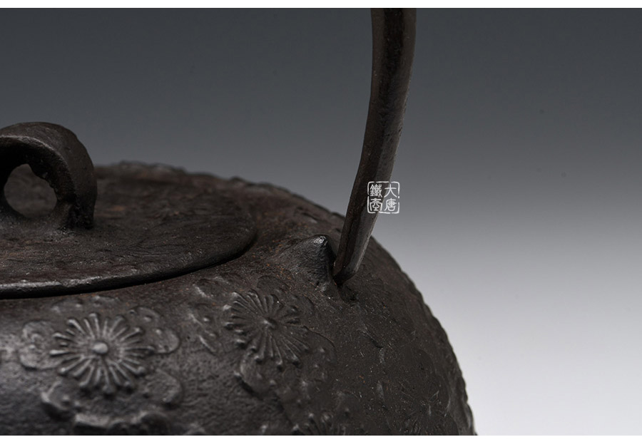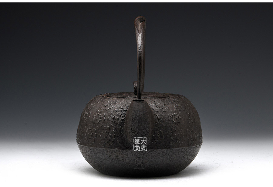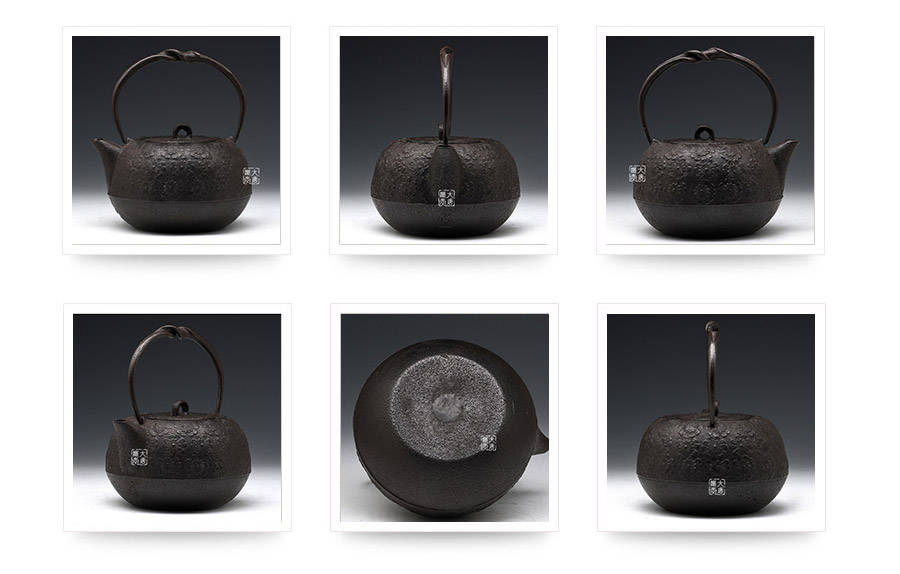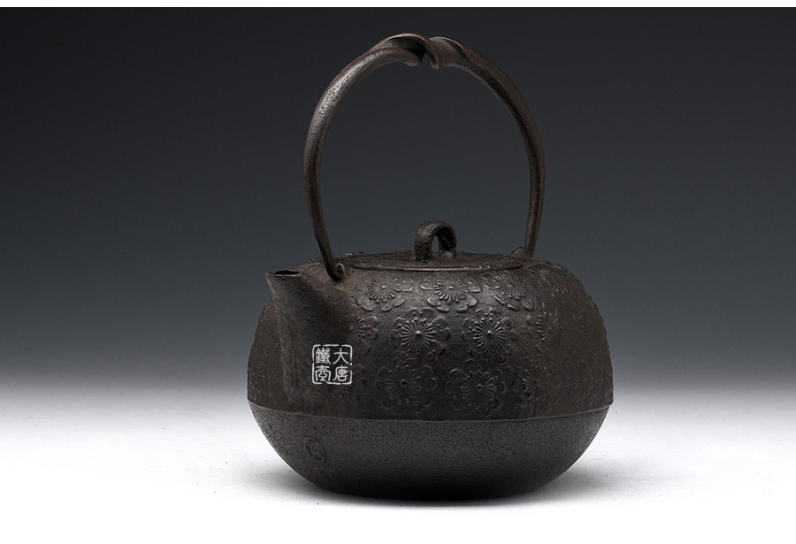 虎山工房創(chuàng)立于1955年,位于盛岡市手作村,是日本南部鐵器中的重要代表。”虎山”之名源于初代釜師熊谷平吉的出生地是以前南部藩飼養(yǎng)老虎的地方,故取“虎山”作為工房的名字。熊谷平吉擅長印刻湯釜和鐵瓶上的圖案,制作的鐵器帶有濃厚的藝術(shù)氣息,被視為鐵和火融合于一身的茶道藝術(shù)品?;⑸焦し恐谱鞯蔫F瓶,主要以砂模澆鑄的方法為主,但是改進(jìn)了木質(zhì)刮板的制模技術(shù),從而得以制作出多邊形的鐵器,在南部鐵器中獨(dú)樹一幟。