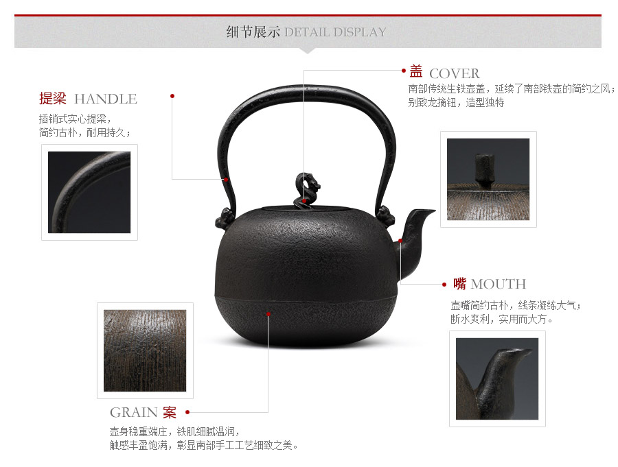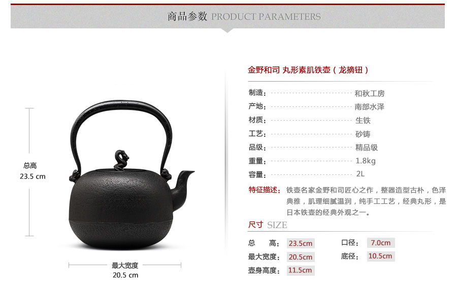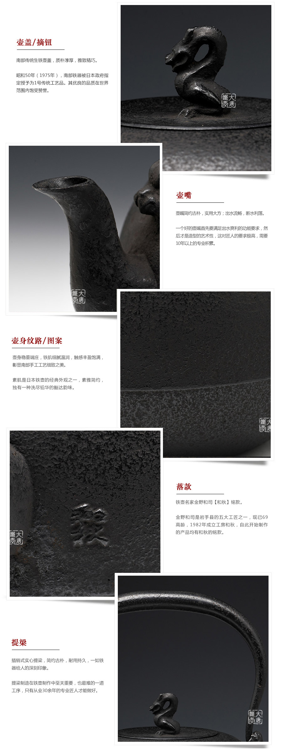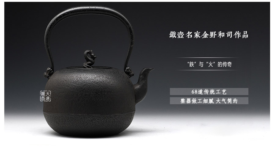 鐵壺名家金野和司匠心之作,整器造型古樸,色澤典雅,肌理細(xì)膩溫潤(rùn),純手工工藝,經(jīng)典丸形,是日本鐵壺的經(jīng)典外觀之一。