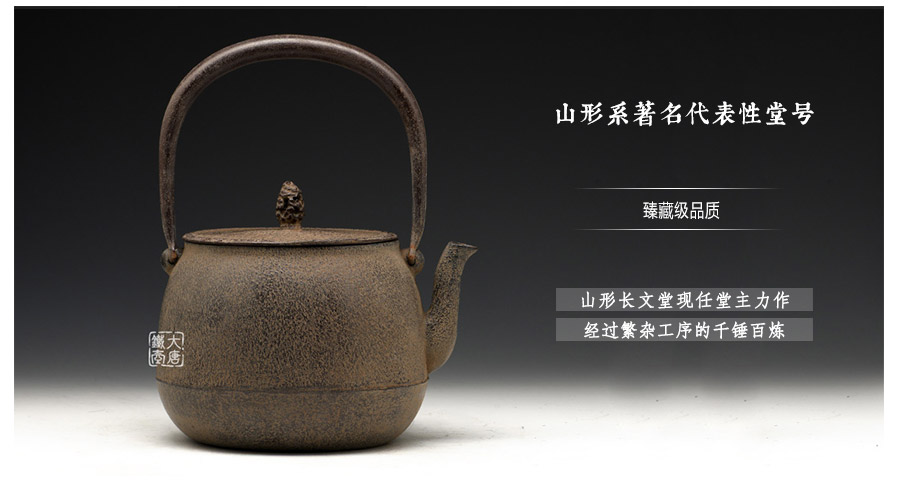 山形長文堂現(xiàn)任堂主,長谷川光昭作品,燒型制法,一模一具,壺身素紋,素肌是日本鐵壺的經(jīng)典外觀之一,素雅簡約,獨有一種洗盡鉛華的豁達韻味。