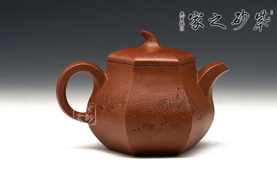 泥性:原礦因含緞泥、紅泥、紫泥等諸多共生礦,陶之后,于深沉之“橙紅色”底上,滿佈五彩斑斕的粗細(xì)、深淺之紅、黃星斑點(diǎn)。