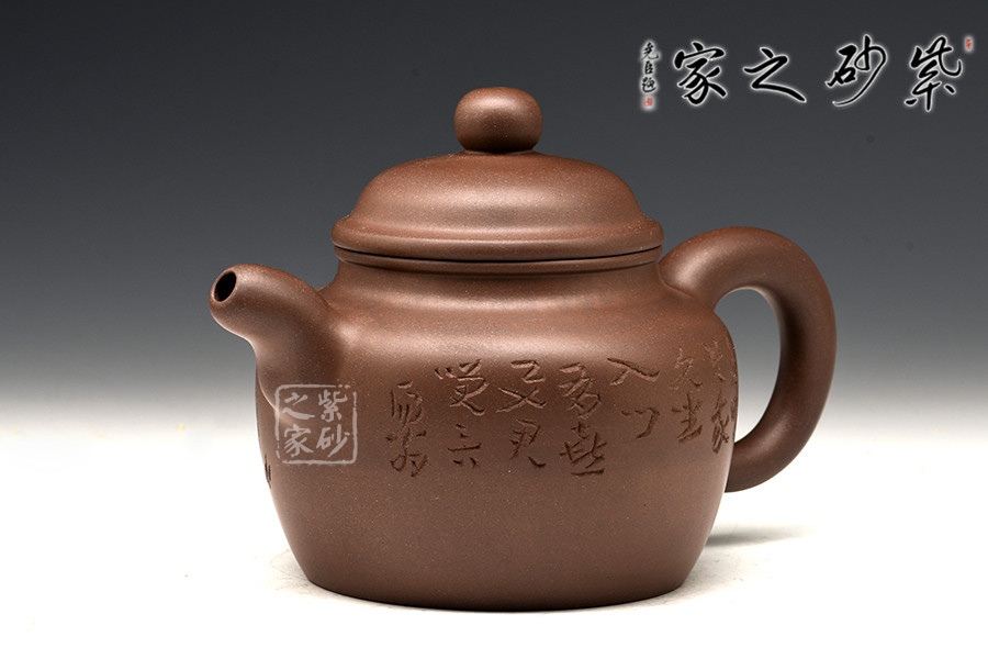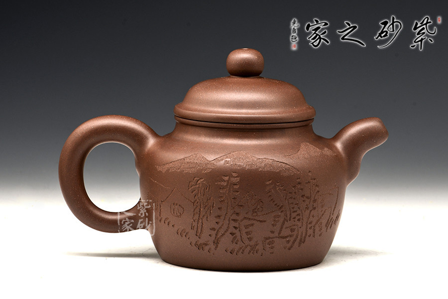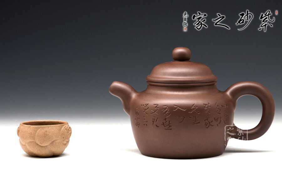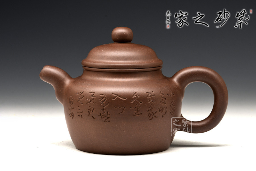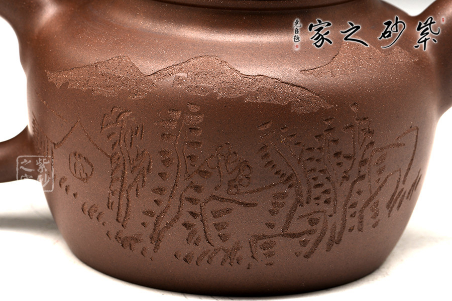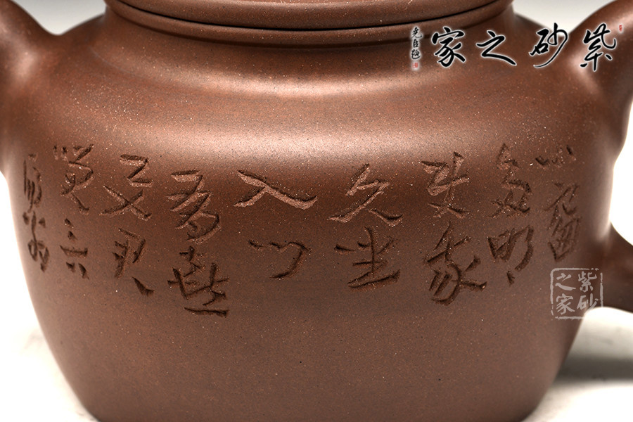 光貨離不開裝飾。俗話說“壺隨字貴,字隨壺傳”:光壺不刻字,就是一把光壺;壺上面刻了大師、名人的字,一把壺的含金量就高了,收藏價值就更高,升值潛力就更大。王福君與中國工藝美術(shù)大師譚泉海合作最多,其次是徐安碧、鮑志強、毛國強(均為中國工藝美術(shù)大師、中國陶瓷藝術(shù)大師)。