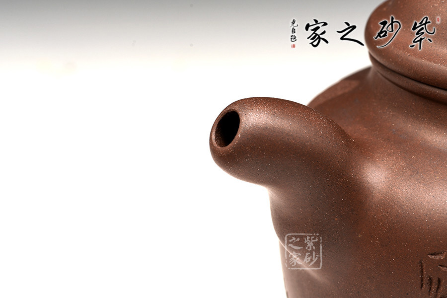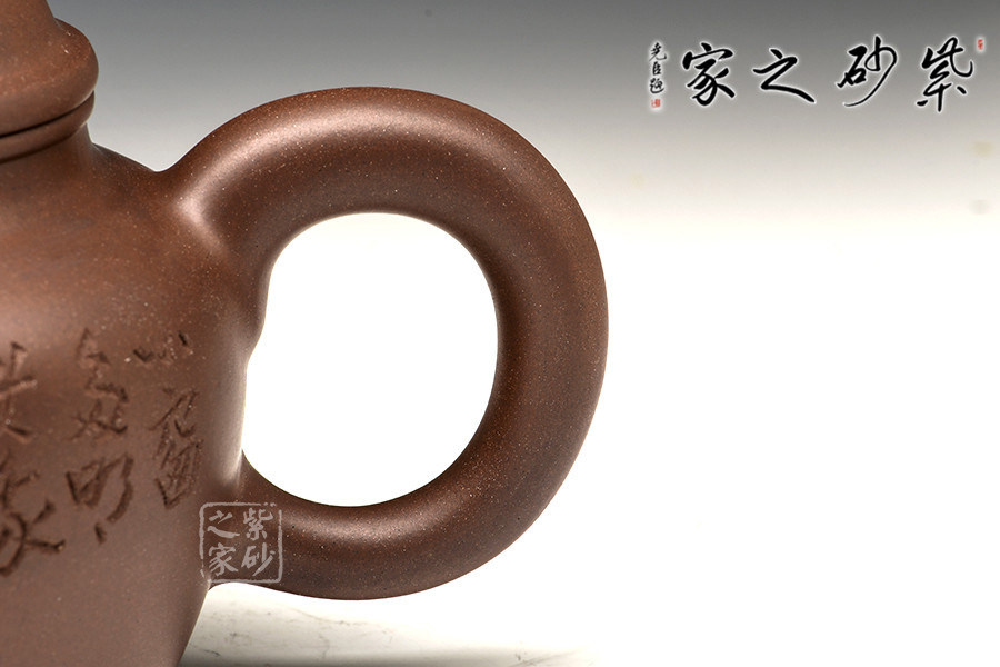 此作形如其名,豐盈飽滿,有種雍容素雅之美。縱觀整器,精工細(xì)致,器形力度、動感十足。粗嘴、粗把,壺體雄健渾厚、圓潤大度、氣勢不凡,較高挑的壺身使得整器厚實穩(wěn)重。