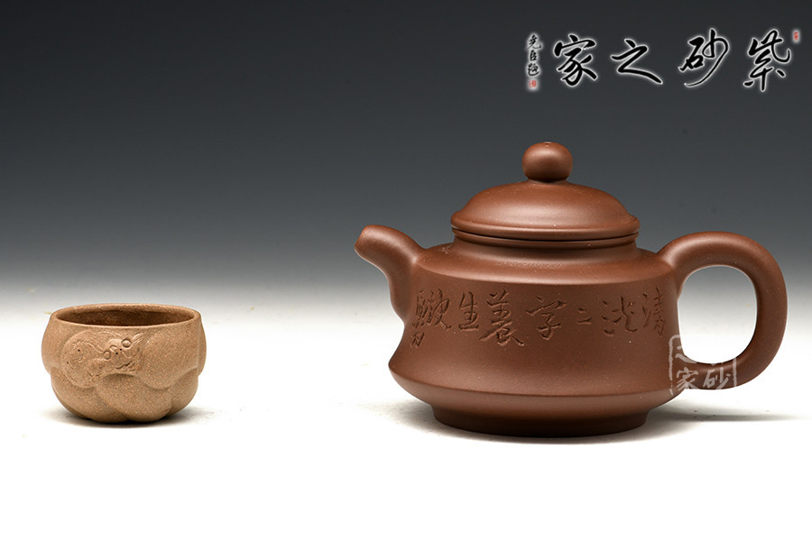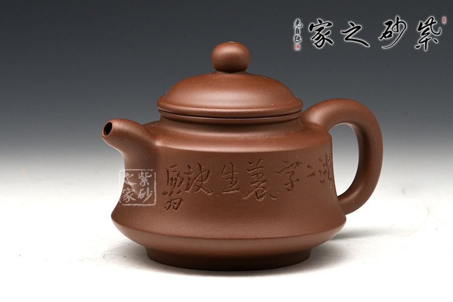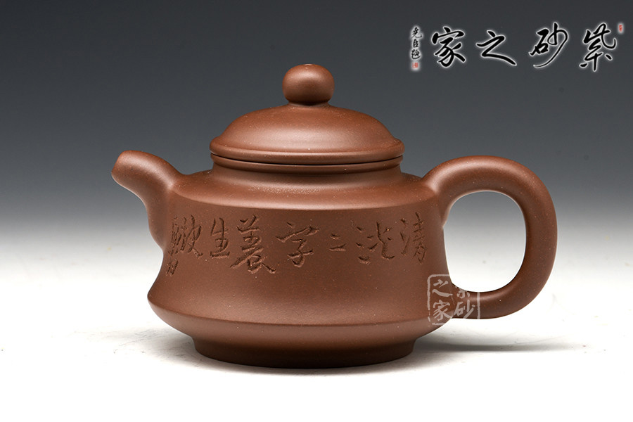 光貨離不開裝飾。俗話說“壺隨字貴,字隨壺傳”:光壺不刻字,就是一把光壺;壺上面刻了大師、名人的字,一把壺的含金量就高了,收藏價值就更高,升值潛力就更大。王福君與中國工藝美術(shù)大師譚泉海合作最多,其次是徐安碧、鮑志強、毛國強(均為中國工藝美術(shù)大師、中國陶瓷藝術(shù)大師)。