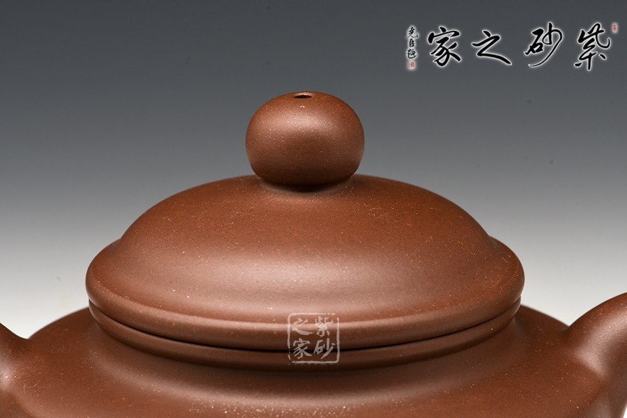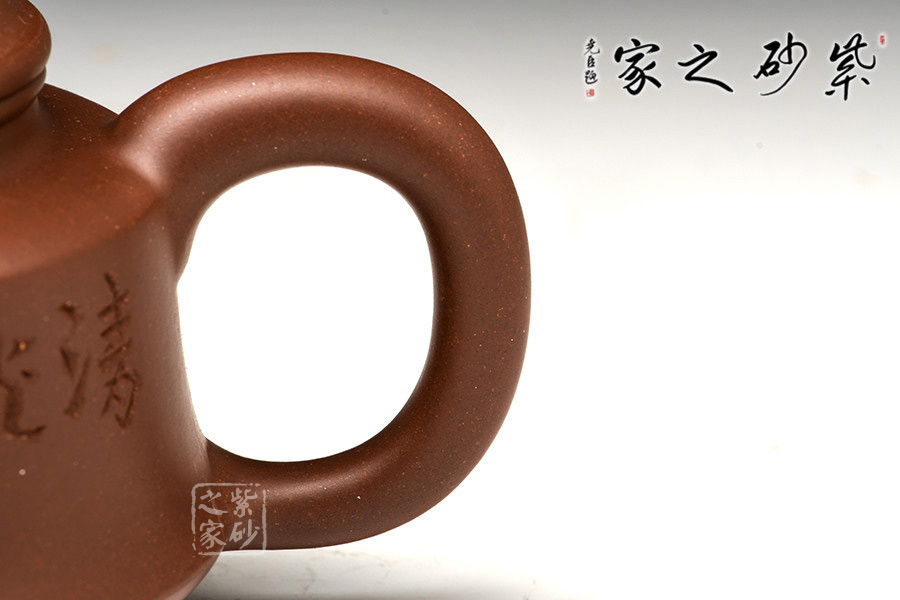 這款“祥鐘”,以古代鐘為形,壺身輪廓柔和,比例協(xié)調(diào)。壺底加圈足,和壺頸部上下對應(yīng),優(yōu)雅氣韻由此頓生。壺蓋飽滿圓潤鼓起,蓋上的圓珠壺鈕圓滑可愛,精妙可人。彎嘴胥出自然,出、斷水利落,圈形壺把形態(tài)優(yōu)美,與壺嘴兩相對應(yīng),更顯此壺特別的味道。
