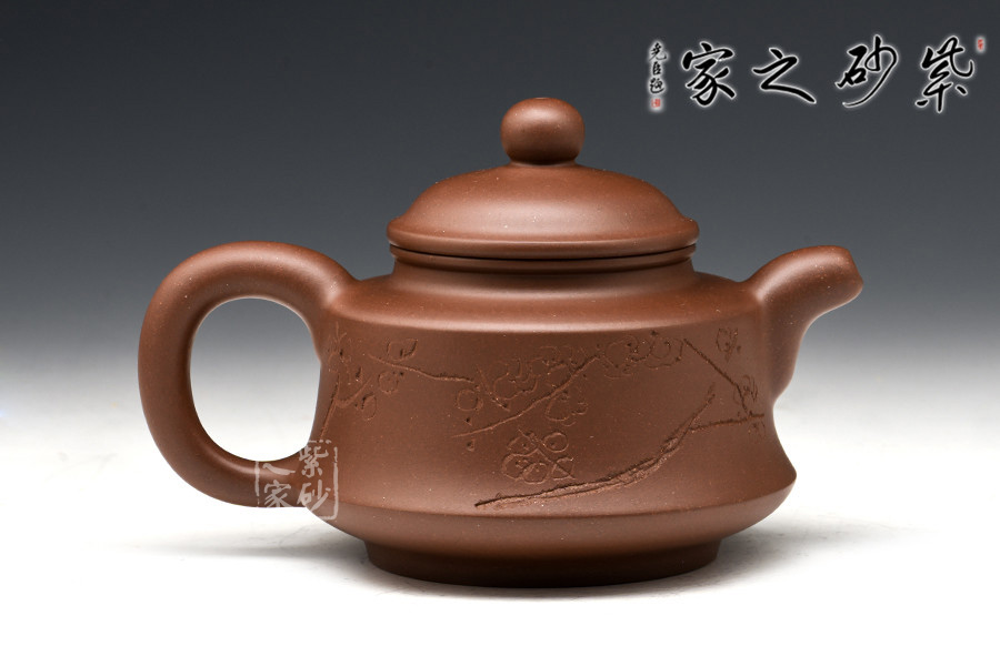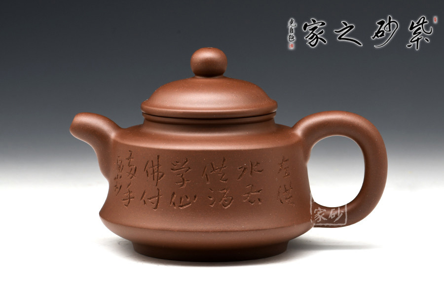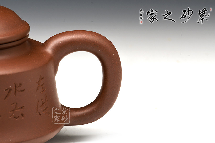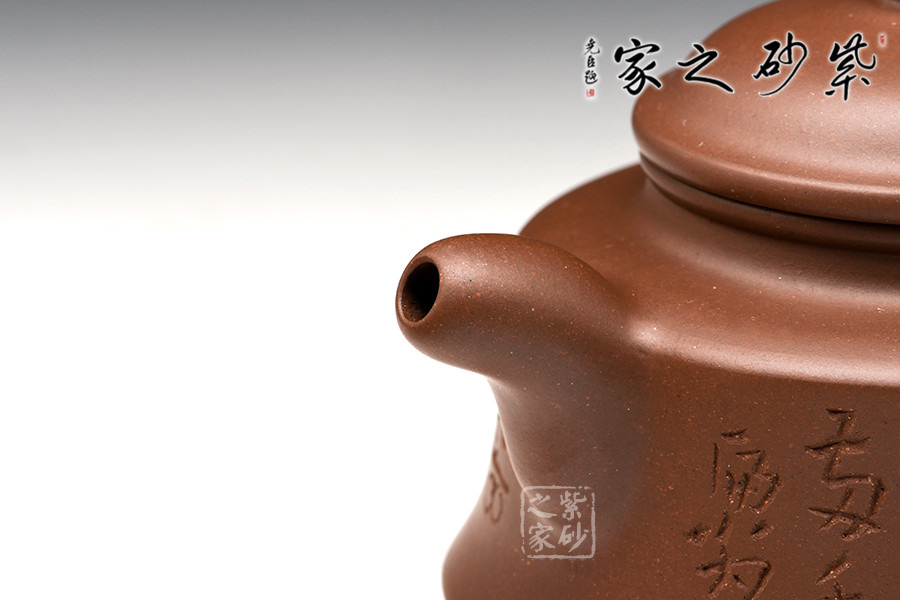 光貨離不開裝飾。俗話說“壺隨字貴,字隨壺傳”:光壺不刻字,就是一把光壺;壺上面刻了大師、名人的字,一把壺的含金量就高了,收藏價值就更高,升值潛力就更大。王福君與中國工藝美術(shù)大師譚泉海合作最多,其次是徐安碧、鮑志強(qiáng)、毛國強(qiáng)(均為中國工藝美術(shù)大師、中國陶瓷藝術(shù)大師)。