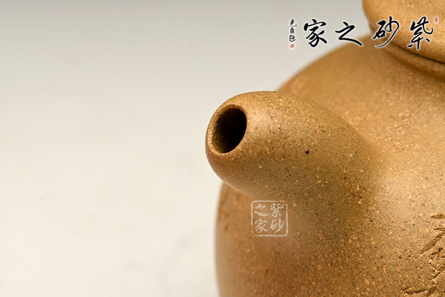 泥性:感甜嫩綿密,質(zhì)堅(jiān)而溫潤(rùn),呈近田黃色調(diào),為江蘇宜興趙莊山系朱泥礦~黃石黃之共生礦,經(jīng)挑揀練製而成,因含鐵量只達(dá)6%左右,致陶之后呈“金田黃色”。