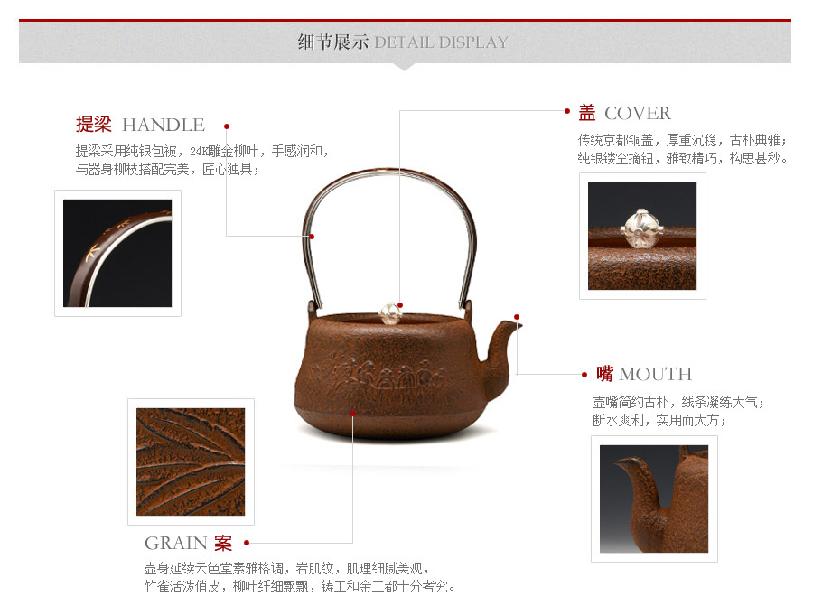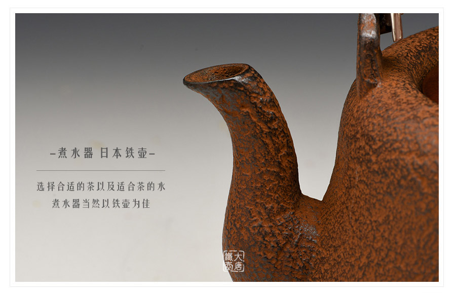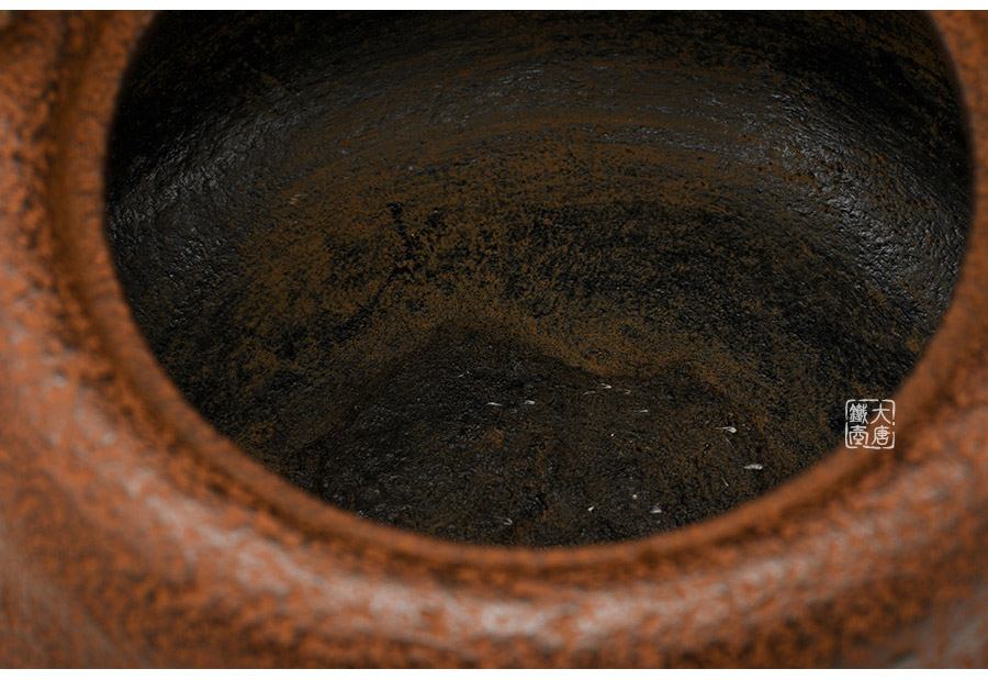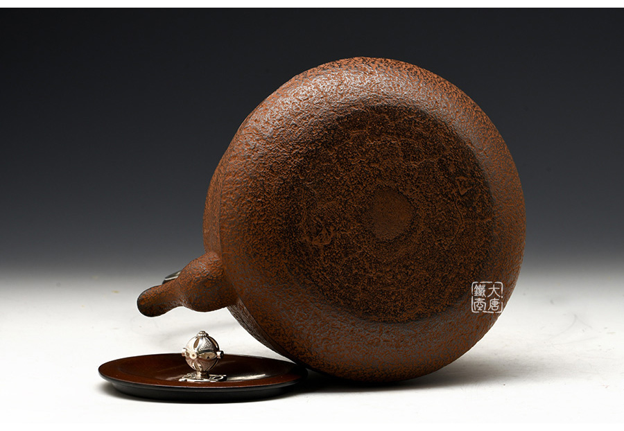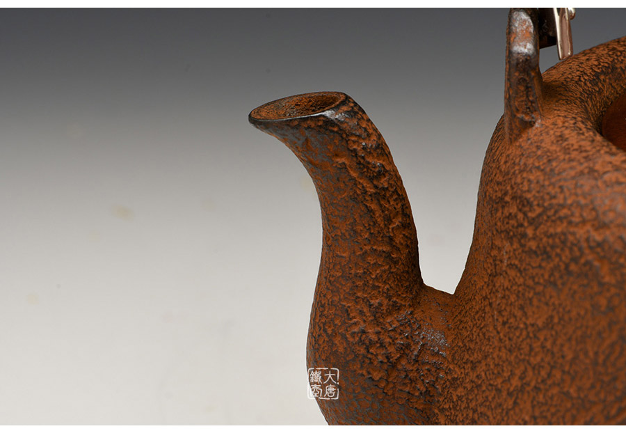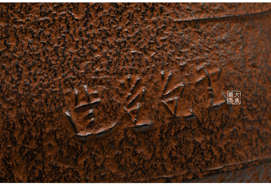 云色堂的鐵壺以豐美的裝飾技巧最為人稱道,描金及鑲金技術(shù)十分成熟。紋飾圖案的線條借鑒了日本古典瓷器的樣式。同時(shí)在一些細(xì)節(jié)的構(gòu)建上,云色堂也不惜使用珍貴的材料來彰顯他華貴的氣質(zhì)。在眾多堂口的鐵瓶中,這種特色使得其作品有很強(qiáng)的辨識(shí)性。