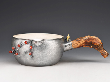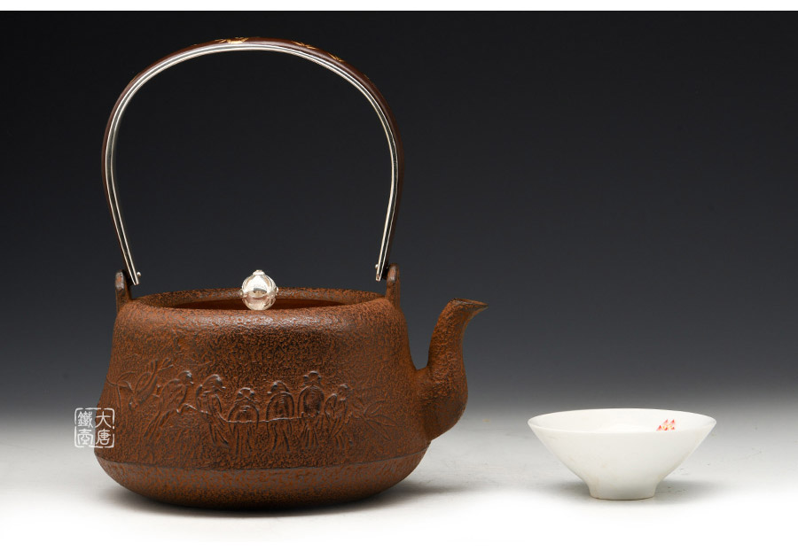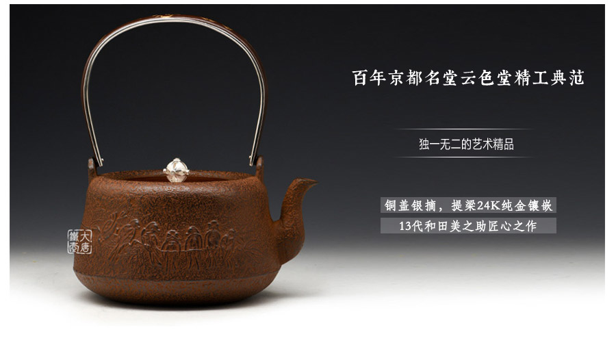 10代和田美之助親自前往雨宮金壽堂學(xué)習(xí)茶湯釜、鐵瓶的鑄造技法,深得京都鐵瓶的制作精髓。幾代人孜孜不倦努力,換來日益精進(jìn)的技藝與作品。現(xiàn)在每天云色堂的作品都會(huì)在各地展出。如今第13代傳人和田美之助傳承京都湯釜制作工藝,鉆研并改良京都鐵瓶的古法制作技術(shù),重現(xiàn)明治時(shí)期最高級(jí)京都鑲嵌鐵瓶。