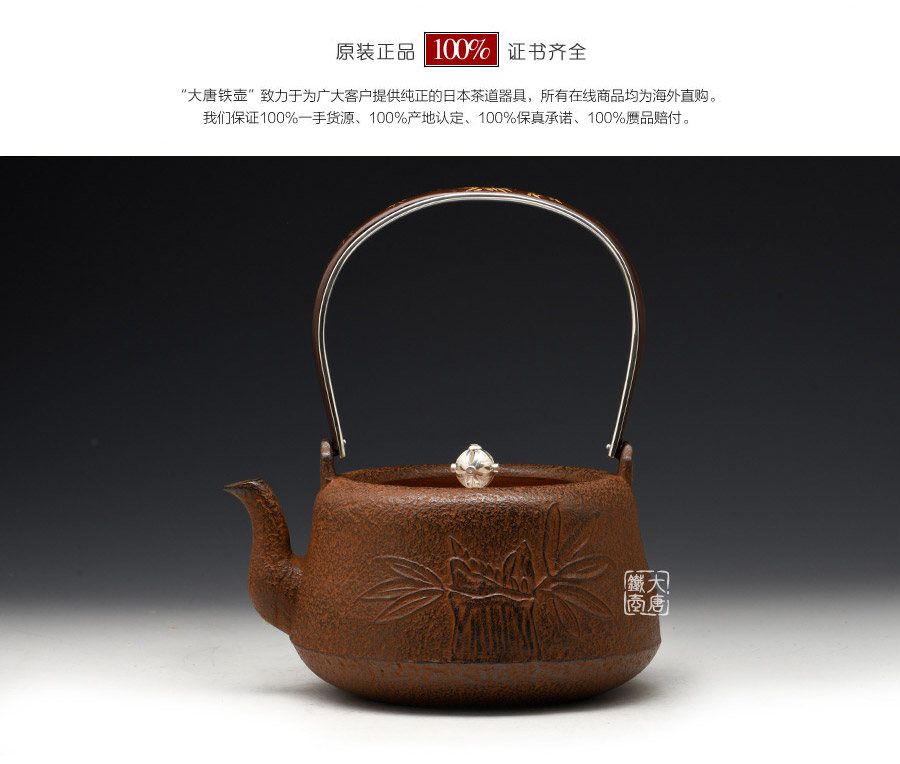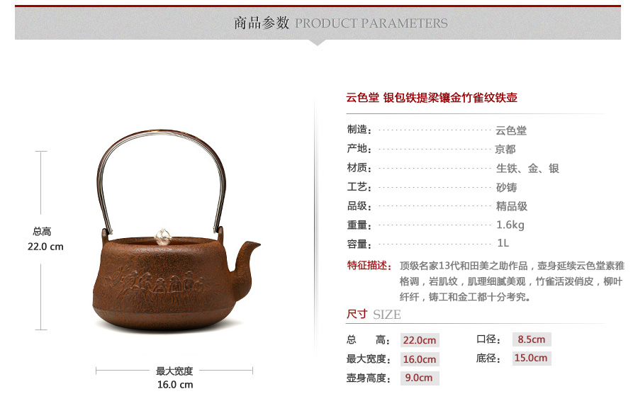 云色堂 銀包鐵提梁鑲金竹雀紋鐵壺 [ 編號(hào):69428 ]
