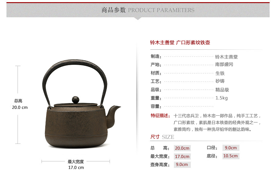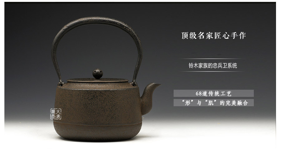十三代忠兵衛(wèi),鈴木忠一郎作品,純手工工藝,廣口形素紋,素肌是日本鐵壺的經(jīng)典外觀之一,素雅簡(jiǎn)約,獨(dú)有一種洗盡鉛華的豁達(dá)韻味。